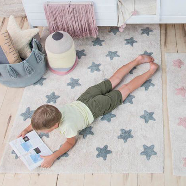 Ένα κλασικό χαλί από τη Lorena Canals και τη συλλογή Stars, που θα φέρει άνεση και ζεστασιά στους χώρους του σπιτιού σας. Το χαλί Stars, με το κλασικό σχέδιο των αστεριών, σε γκρι χρώμα με γαλάζιες λεπτομέρειες, είναι ιδανικό για κάθε παιδικό δωμάτιο, κρεβατοκάμαρα ή play room. Το χαλί κατασκευάζεται με παραδοσιακό τρόπο στο χέρι και αποτελεί ένα προσεκτικά σχεδιασμένο προϊόν. Πλένεται εύκολα στο πλυντήριο στους 30°C, με ελαφρύ απορρυπαντικό, χωρίς μαλακτικό ή λευκαντικό. Κατασκευάζεται με παραδοσιακό τρόπο, από 100% φυσικό βαμβάκι και μη τοξικές βαφές Πληροί όλες τις προδιαγραφές ποιότητας και ασφάλειας για τα παιδιά, ενώ έχει ISO 9001, ISO 14001, ISO 18001 και πιστοποιητικά AITEX. Ένα χειροποίητο και προσεκτικά σχεδιασμένο προϊόν. Κάθε χαλί είναι μοναδικό, επομένως μπορεί να υπάρχουν μικρές διαφορές στο χρώμα και το σχήμα