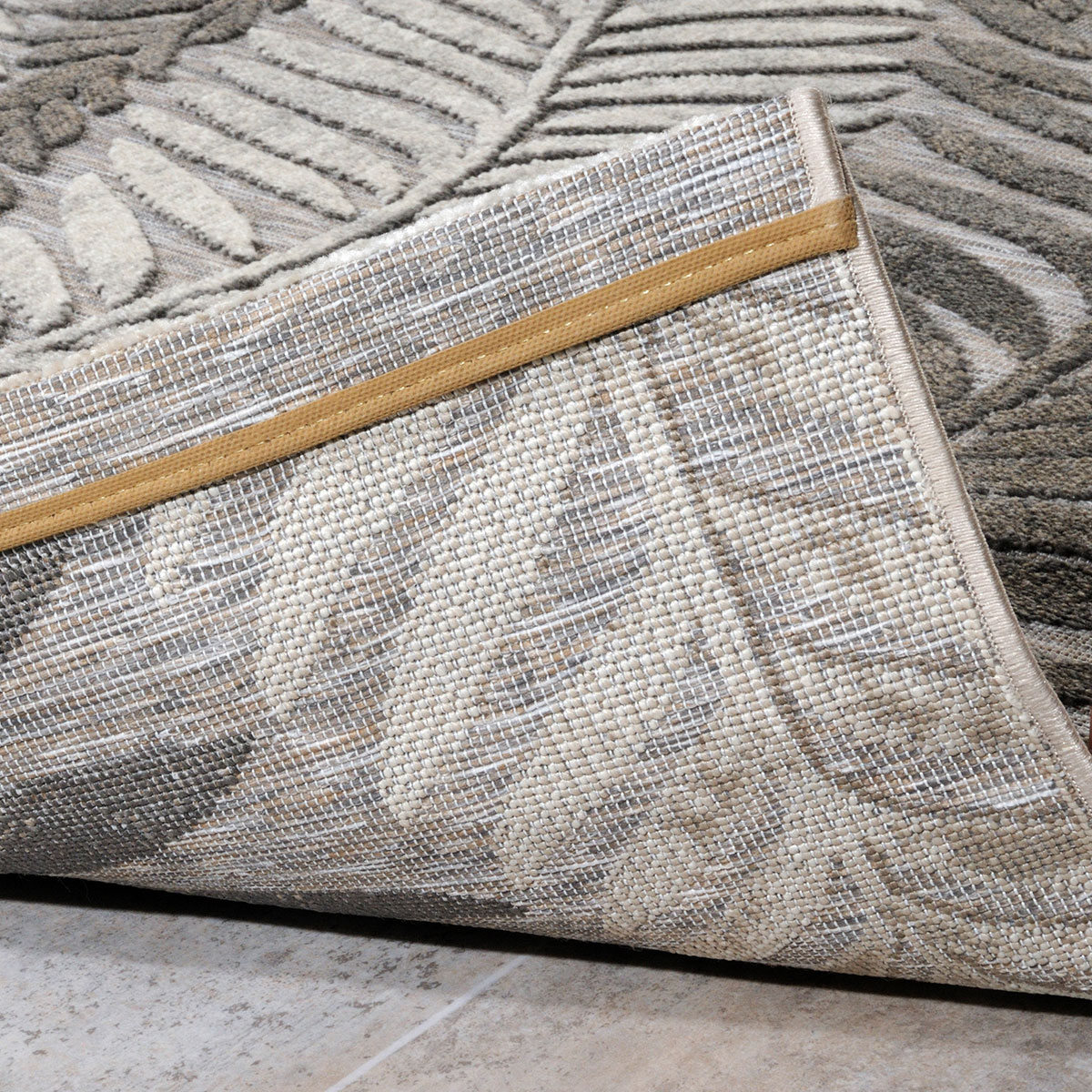 Μηχανοποίητο χαλί 4 εποχών 133x190 από τη σειρά Boheme της εταιρείας Tzikas Carpets, με tropical σχέδιο σε μοντέρνο στυλ. Εκλεπτυσμένο χαλί με καλοδουλεμένη μίξη χρωμάτων σε γκρι αποχρώσεις με μπεζ, εκρού και καφέ λεπτομέρειες. Είναι κατασκευασμένο με ανεξίτηλα νήματα σύνθεσης 100% frise πολυπροπυλένιο και έχει ανάγλυφο μοτίβο. Μπορεί να τοποθετηθεί σε όλους τους χώρους του σπιτιού, αναβαθμίζοντας την αισθητική τους, καθώς προσδίδει μία πινελιά πολυτέλειας. Iδανικό για όλες τις εποχές με μοναδική αίσθηση στο πάτημα, θα στολίσει τον χώρο σας καθόλη τη διάρκεια του έτους. Το βάρος του χαλιού είναι 1.600gsm και έχει πέλος ύψους 3mm. Μπορεί να τοποθετηθεί σε εσωτερικό ή και εξωτερικό χώρο. Το υπόστρωμα είναι υφαντό και καθιστά το χαλί ανθεκτικό στην χρήση και τις πλύσεις. Είναι αντιστατικό επομένως δεν μαγνητίζονται χνούδια, μικροσωματίδια και σκόνη στην επιφάνειά του, ενώ το σκούπισμα με ηλεκτρική σκούπα είναι εύκολο και αποτελεσματικό. Τα χαλιά της εταιρείας Tzikas Carpets είναι υποαλλεργικά και φιλικά προς την υγεία και το περιβάλλον. Τα χαλιά της εταιρείας Tzikas Carpets έχουν πιστοποίηση του Γερμανικού ινστιτούτου Oeko-Tex Standard 100.