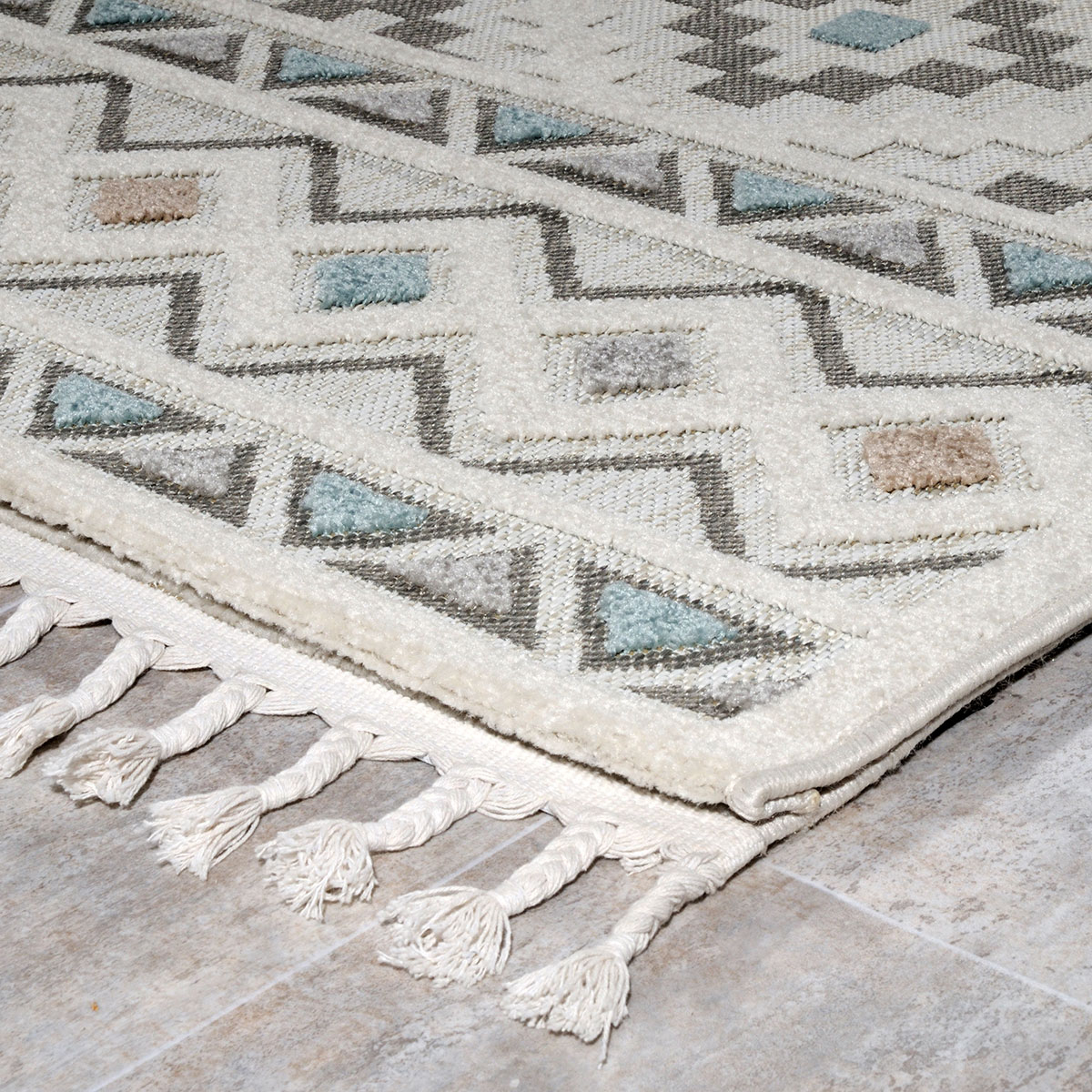Μηχανοποίητο χαλί 4 εποχών 133x190 από τη σειρά Tenerife της εταιρείας Tzikas Carpets σε έθνικ στυλ με γεωμετρικά μοτίβα. Εκλεπτυσμένο χαλί με καλοδουλεμένη μίξη χρωμάτων σε γκρι και εκρού αποχρώσεις με μπλε και καφέ λεπτομέρειες. Μπορεί να τοποθετηθεί σε όλους τους χώρους του σπιτιού, αναβαθμίζοντας την αισθητική τους, καθώς προσδίδει μία πινελιά πολυτέλειας. Iδανικό για όλες τις εποχές με μοναδική αίσθηση στο πάτημα, θα στολίσει τον χώρο σας καθόλη τη διάρκεια του έτους. Είναι κατασκευασμένο με ανεξίτηλα νήματα σύνθεσης 100% frise πολυπροπυλένιο. Η βάση είναι ψάθα, ενώ το μοτίβο είναι ανάγλυφο από frise νήματα. Το βάρος του χαλιού είναι 1.300gsm και έχει πέλος ύψους 3mm. Φέρει περίτεχνο κρόσσι κοτσίδα, που προσδίδει μία boho αισθητική. Το υπόστρωμα είναι υφαντό και καθιστά το χαλί ανθεκτικό στην χρήση και τις πλύσεις. Είναι αντιστατικό επομένως δεν μαγνητίζονται χνούδια, μικροσωματίδια και σκόνη στην επιφάνειά του, ενώ το σκούπισμα με ηλεκτρική σκούπα είναι εύκολο και αποτελεσματικό. Τα χαλιά της εταιρείας Tzikas Carpets είναι υποαλλεργικά και φιλικά προς την υγεία και το περιβάλλον. Τα χαλιά της εταιρείας Tzikas Carpets έχουν πιστοποίηση του Γερμανικού ινστιτούτου Oeko-Tex Standard 100.