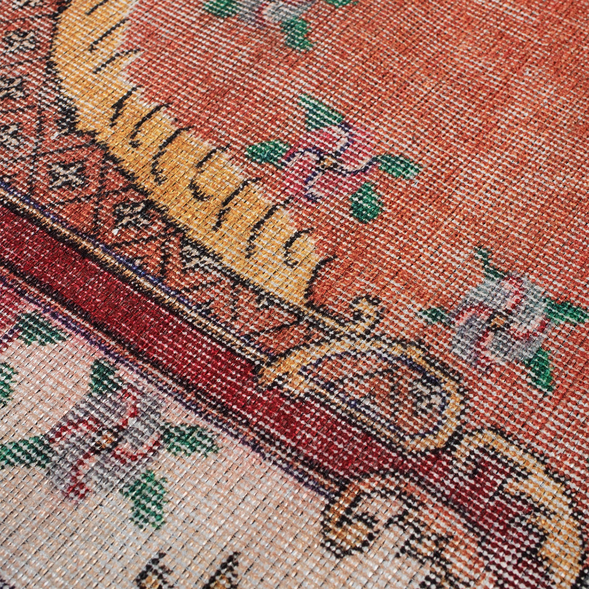 Χαλί μηχανής 4 εποχών 160x230 από την σειρά Plumeria της εταιρείας Βιοκαρπέτ. Φέρει εντυπωσιακό vintage σχέδιο σε κόκκινες αποχρώσεις με πολύχρωμες λεπτομέρειες. Πρόκειται για εξαιρετικό σταμπωτό χαλί με καλοδουλεμένη μίξη χρωμάτων. Μπορεί να τοποθετηθεί σε όλους τους χώρους του σπιτιού, αναβαθμίζοντας την αισθητική τους. Είναι ιδανικό για όλες τις εποχές και θα στολίσει το χώρο σας καθόλη τη διάρκεια του έτους. Είναι κατασκευασμένο από ανεξίτηλα νήματα σύνθεσης 37% βαμβάκι, 10% βισκόζη και 53% chenille polyester. Το βάρος του χαλιού είναι 1.300gsm. Διαθέτει υφαντό chenille υπόστρωμα με αντιολισθητικές ιδιότητες. Επειδή περιέχει και βαμβακερά νήματα, μετά την επεξεργασία του ενδέχεται να προκαλέσει συρρίκνωση 3-5% στις αρχικές διαστάσεις του χαλιού. Είναι αντιστατικό άρα το σκούπισμα με ηλεκτρική σκούπα είναι εύκολο και αποτελεσματικό. Τα χαλιά της συλλογής Plumeria είναι υποαλλεργικά και φιλικά προς την υγεία και το περιβάλλον. Φέρουν την υπογραφή της εταιρείας Βιοκαρπέτ για άριστη ποιότητα και αξιοπιστία.