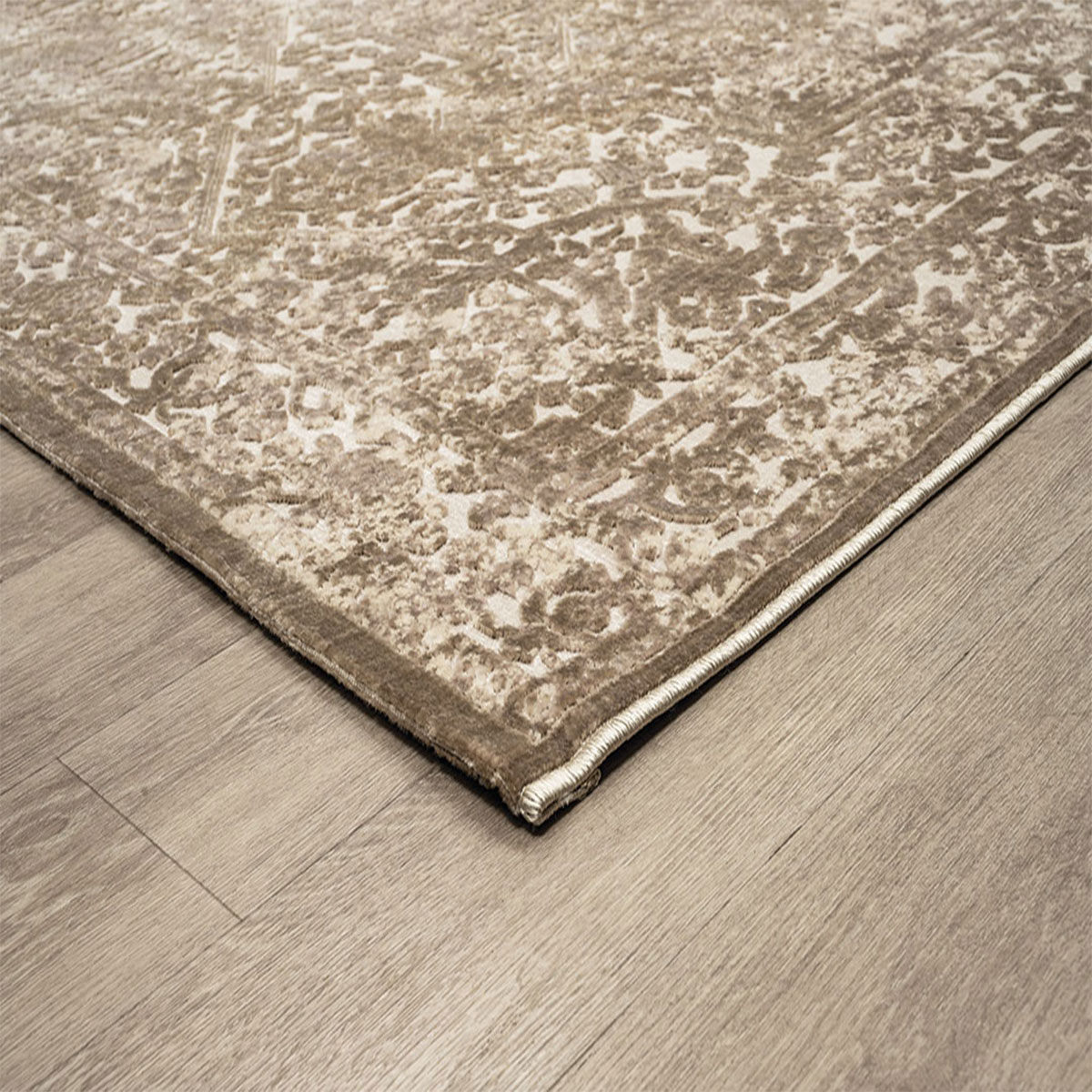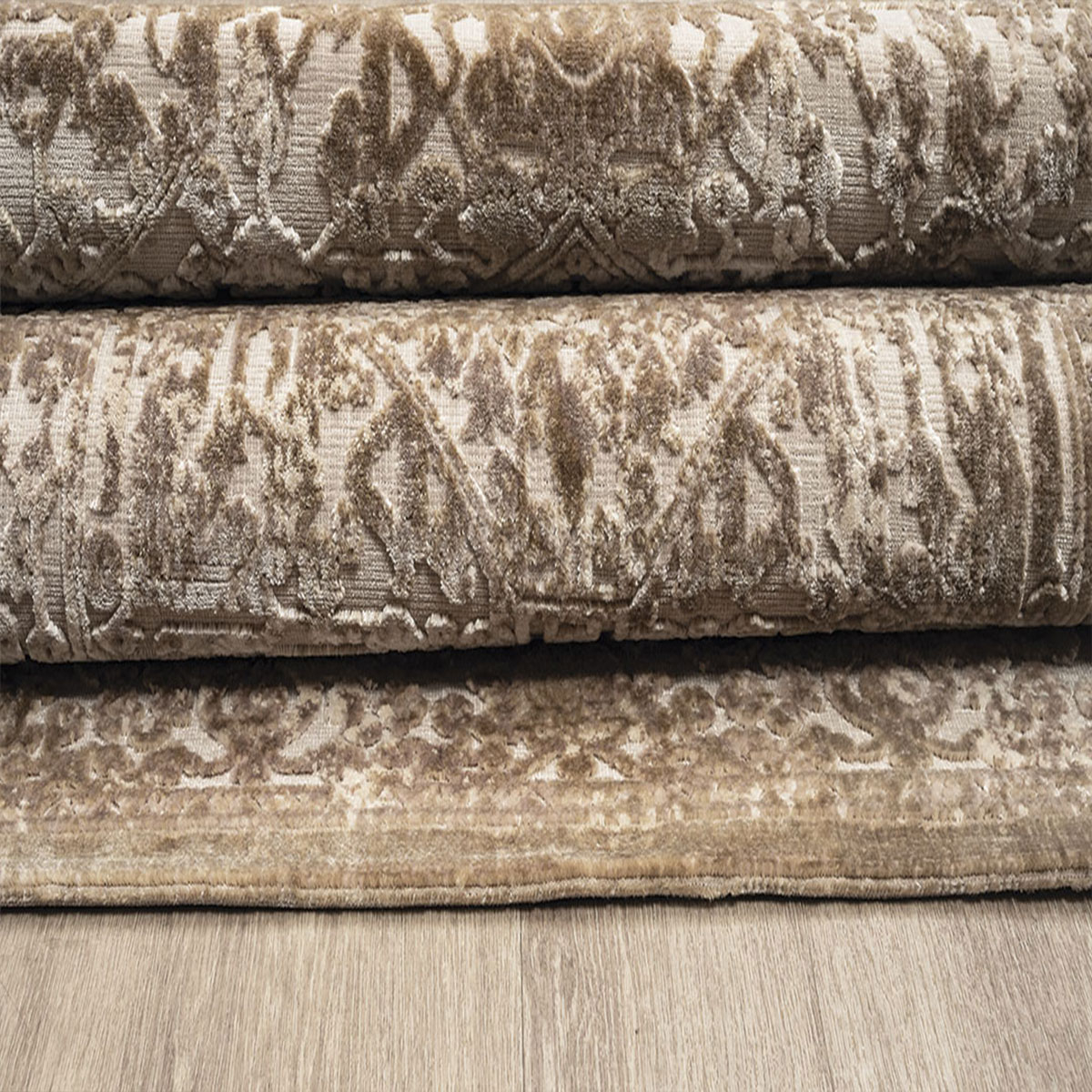 Χαλί μηχανοποίητο 4 εποχών 160x230 από τη σειρά Venice της εταιρείας New Plan, σε καφέ-μπεζ χρώμα και ανάγλυφο κλασικό σχέδιο. Είναι κατασκευασμένο με εξαιρετικής ποιότητας ανεξίτηλα νήματα από 100% polyester chenille. Tο βάρος του χαλιού είναι 1.250gsm, ενώ η πυκνότητά του ανέρχεται στους 470.400 κόμπους/τ.μ. Διαθέτει χαμηλό πέλος ύψους 3mm που είναι ιδανικό για τοποθέτηση όλο τον χρόνο. Τα χαλιά της εταιρείας New Plan είναι οικολογικά και υποαλλεργικά.