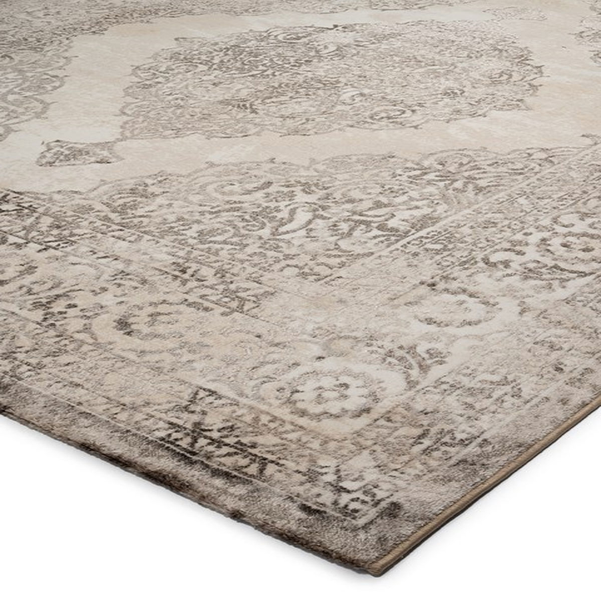 Χαλί μηχανής 4 εποχών 200x250 από την συλλογή Gossip της εταιρείας Βιοκαρπέτ. Η βάση του είναι σε εκρού χρώμα, έχει γκρι λεπτομέρειες και vintage σχέδιο. Είναι κατασκευασμένο με ανεξίτηλα νήματα σύνθεσης 100% polyester. Έχει βάρος είναι 1.700gsm. Το ύψος πέλους είναι 8mm, ενώ η πυκνότητά του ανέρχεται στους 432.000 κόμπους/τ.μ. Η απαλή επιφάνεια του χαλιού σχηματίζει ήπιο ανάγλυφο. Διαθέτει υφαντό υπόστρωμα, που το καθιστά ιδιαίτερα ανθεκτικό. Είναι αντιστατικό άρα το σκούπισμα με ηλεκτρική σκούπα είναι εύκολο και αποτελεσματικό. Μπορεί να τοποθετηθεί σε όλους τους χώρους του σπιτιού. Τα χαλιά της εταιρείας Βιοκαρπέτ είναι υποαλλεργικά και φιλικά προς την υγεία και το περιβάλλον.