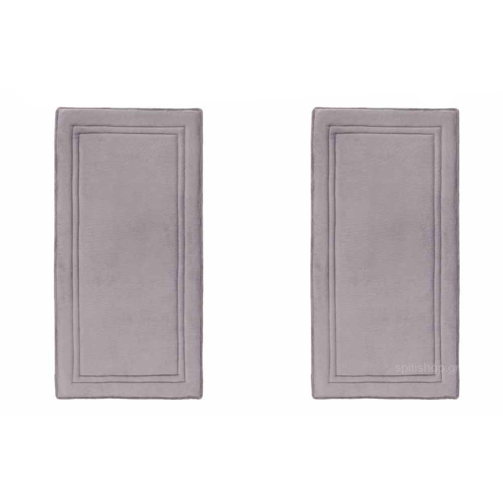 Σετ χαλιά κρεβατοκάμαρας από την εταιρεία Guy Laroche σε λιλά χρώμα. Είναι κατασκευασμένα από memory foam με σύνθεση 100% μικροΐνες. Το υλικό αυτό προσφέρει απαλό και σταθερό πάτημα, καθώς το χαλί παίρνει το σχήμα του πέλματος και μετά επανέρχεται πάλι στη θέση του.
