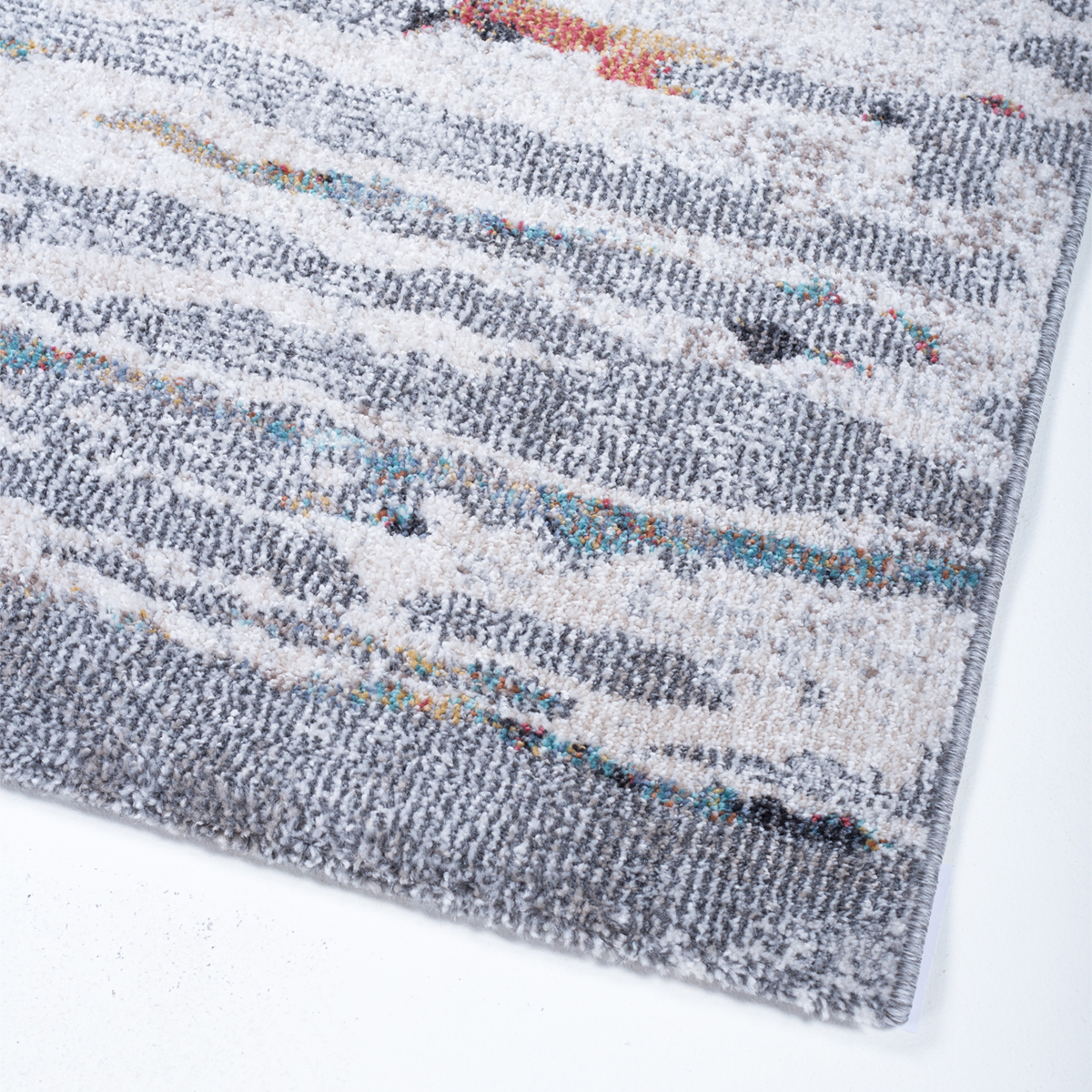 Σετ χαλιά μηχανής 3 τεμαχίων με πλάτος 70cm από τη συλλογή Monza της εταιρείας Colore Colori σε εκρού και γκρι αποχρώσεις με πολύχρωμες λεπτομέρειες. Φέρει εντυπωσιακό μοντέρνο σχέδιο. Είναι ιδανικό να στολίσει όλους τους χώρους του σπιτιού, ενώ μπορεί να συνδυαστεί με όλα τα στυλ διακόσμησης. Ο εξαιρετικός συνδυασμός χρωμάτων και σχεδίου καθιστά το χαλί ιδανικό και για εφηβικά δωμάτια και νεανικούς χώρους. Έχει στιβαρό και πυκνό πέλος ύψους 9mm, ενώ το τρίχωμά του είναι απαλό. Ανθεκτικό χαλί, ειδικά σχεδιασμένο για την σκληρή καθημερινή οικιακή χρήση. Η σύνθεσή του είναι 100% frize heatset πολυπροπυλένιο αρίστης ποιότητας, ενώ το βάρος του είναι 1.859gsm. Η εξαιρετική ποιότητα και επεξεργασία των ανεξίτηλων νημάτων, τους προσθέτει έξτρα δυνατότητες που αφορούν την γρήγορη επαναφορά του πέλους και την ανθεκτικότητα. Τα νήματα έχουν αντιλεκιαστική προστασία ώστε να μην απορροφάται εύκολα κάθε είδους λεκές, καθιστώντας εύκολο τον καθαρισμό του χαλιού. Είναι αντιστατικό επομένως δεν μαγνητίζονται χνούδια, μικροσωματίδια και σκόνη στην επιφάνειά του. To υπόστρωμα του χαλιού είναι γερά πλεγμένο, στην ίδια μηχανή κατασκευής, χωρίς πρόσθετα και κόλλες. Το χαλί είναι αντιαλλεργικό και η αντιβακτηριδιακή του προστασία εμποδίζει την ανάπτυξη αποικιών από ακάρεα, για μέγιστη προστασία της υγείας. Η συλλογή Monza έχει πιστοποίηση του Γερμανικού ινστιτούτου Oeko-Tex Standard 100 και πιστοποίηση 11.ΗΤΡ.94219 από το ινστιτούτο Hohenstein για την μη ύπαρξη ουσιών επιβλαβών προς την υγεία και τον οικολογικό προσανατολισμό της. Εγγύηση 2 ετών.