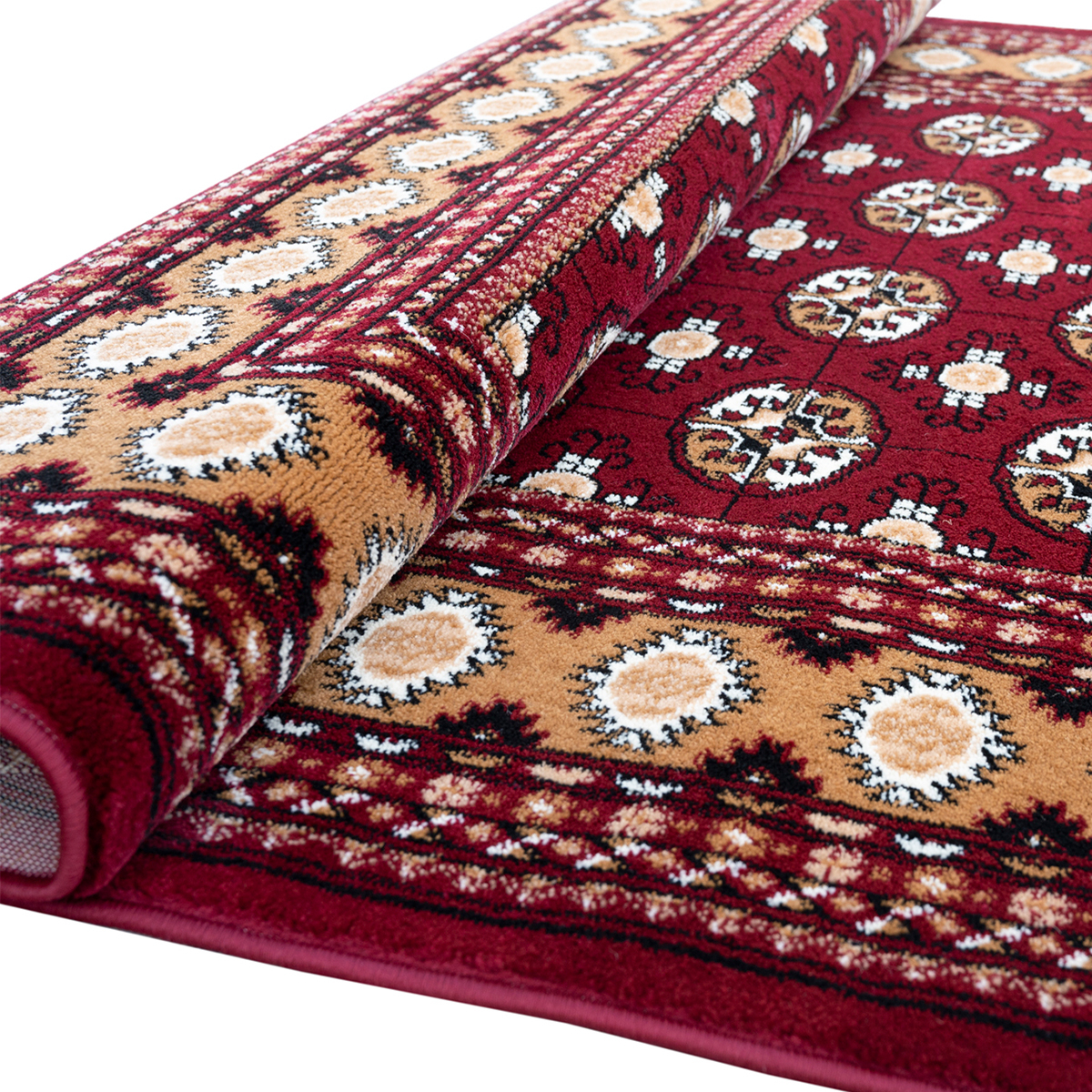 Σετ χαλιά μηχανής 3 τεμαχίων από την συλλογή Focus της εταιρείας Polcarpet σε μπορντώ απόχρωση με εκρού, μπεζ και μαύρες λεπτομέρειες. Πρόκειται για πρακτικά χαλιά με εντυπωσιακό κλασικό σχέδιο. Θα αναβαθμίσουν την αισθητική της κρεβατοκάμαρας, καθώς προσδίδουν μία πινελιά πολυτέλειας. Είναι κατασκευασμένα με ανεξίτηλα νήματα σύνθεσης 100% heatset πολυπροπυλένιο. Τα χαλιά έχουν βάρος 1.700gsm και πυκνότητα 286.000 κόμπους/τ.μ. Το πέλος ύψους 10mm σας προσφέρει μία ευχάριστη αίσθηση στο πάτημα. Διαθέτουν υφαντό υπόστρωμα, το οποίο σε συνδυασμό με τα heatset νήματά τους αυξάνουν την αντοχή και τη διάρκεια ζωής των χαλιών. Είναι αντιστατικά επομένως δεν μαγνητίζονται χνούδια, μικροσωματίδια και σκόνη στην επιφάνειά τους, ενώ το σκούπισμα με ηλεκτρική σκούπα είναι εύκολο και αποτελεσματικό. Ο καθαρισμός των χαλιών είναι εύκολος, καθώς είναι πλενόμενα σύμφωνα πάντα με τις οδηγίες του προμηθευτή. Τα χαλιά της εταιρείας Polcarpet είναι υποαλλεργικά και αντιβακτηριδιακά. Έχουν ελεγχθεί για τον οικολογικό τους χαρακτήρα καθώς και για την πλήρη απουσία επιβλαβών για την υγεία ουσιών. Φέρουν τις πιστοποιήσεις Standard 100 Oeko-Textiles και ISO 9001. Πρόκειται για προϊόντα ασφαλή για την υγεία και φιλικά προς το περιβάλλον και τα κατοικίδια.