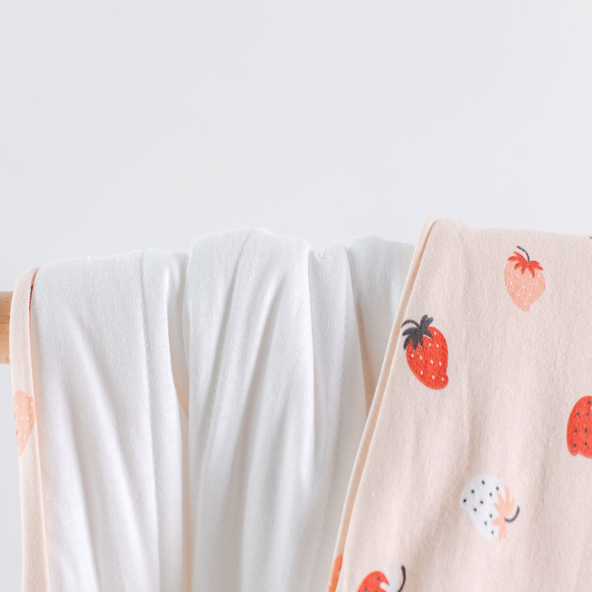Βρεφικός υπνόσακος από την εταιρεία Abo σε σομόν φόντο με κόκκινες λεπτομέρειες και φράουλες στο σχέδιο. Η εξωτερική επένδυση είναι ύφασμα από 100% βαμβάκι. Η γέμισή του είναι από πολυεστερική βάτα. Έχει δείκτη θερμότητας 2,5 tog, που τον καθιστά ιδανικό για δωμάτια με θερμοκρασία 16-20 βαθμούς Κελσίου. Έχει αποσπώμενα μανίκια με μικρό και λεπτό κούμπωμα στο μπράτσο. Διαθέτει φερμουάρ διπλής κατεύθυνσης με άνοιγμα στο πάνω αλλά και στο κάτω μέρος για εύκολη αλλαγή πάνας. Οι ραφές, τα φερμουάρ και τα κουμπιά είναι σχεδιασμένα να βρίσκονται στο εσωτερικό ύφασμα κρυμμένα, ώστε να μην αγγίζουν το δέρμα του μωρού. Φοριέται σαν ρουχαλάκι, χαρίζοντάς του ελευθερία κινήσεων. Ο υπνόσακος εξασφαλίζει σταθερή θερμοκρασία σώματος, ελαχιστοποιώντας έτσι την πιθανότητα να κρυώσει ή να υπερθερμανθεί το μωρό.