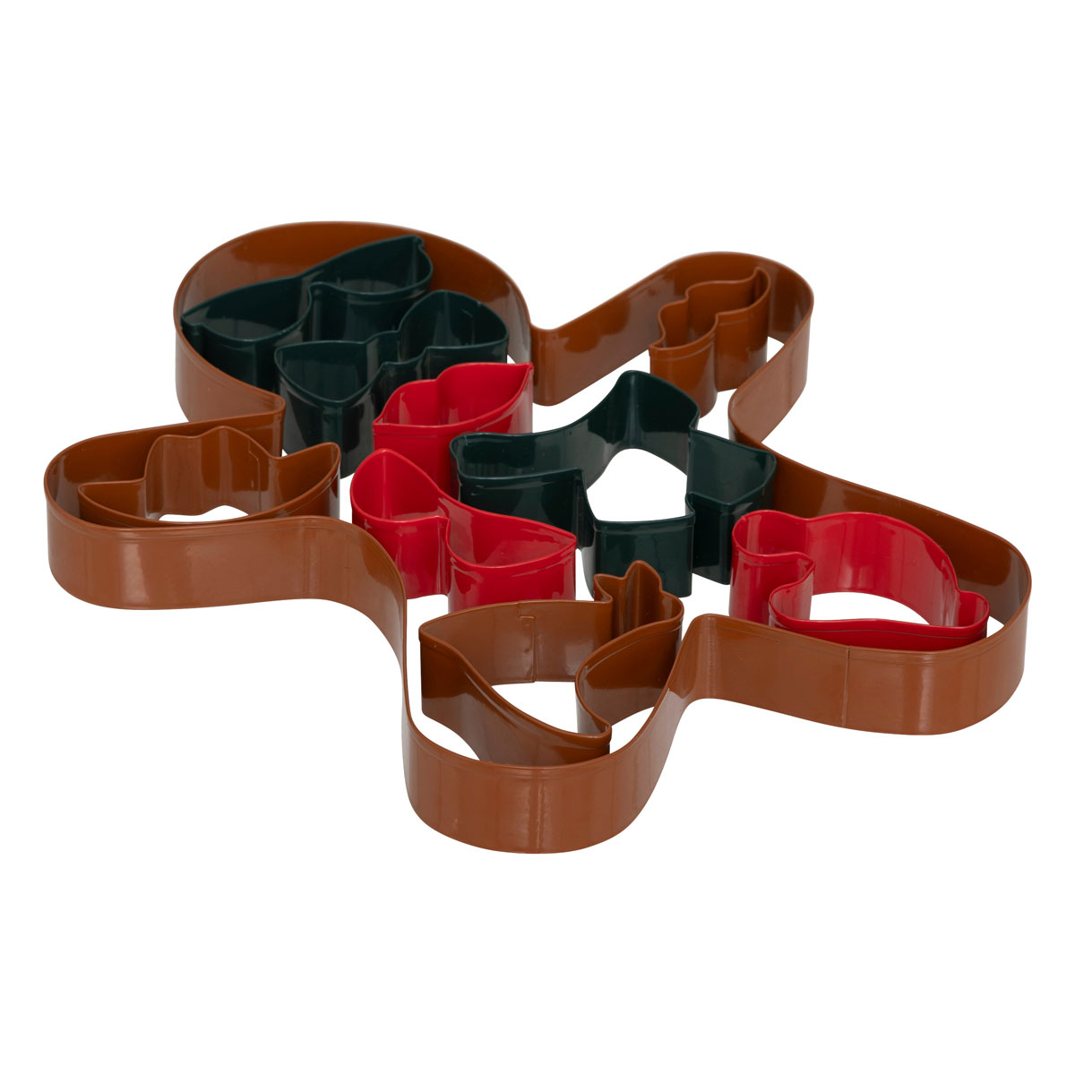 Χριστουγεννιάτικα κουπατ σε μπεζ-κόκκινο-πράσινο χρώμα. Το σετ περιλαμβάνει 1 κουπάτ σε σχήμα Gingerbread και 9 κουπατ σε διάφορα σχήματα για να διακοσμήσετε το μεγάλο μπισκότο με γυαλιά, παπιγιόν και άλλα σχέδια. Είναι κατασκευασμένα από ανοξείδωτο υλικό, κατάλληλο για επαφή με τρόφιμα. Ιδανικό για να φτιάξετε πρωτότυπα μπισκότα με μοναδικά σχέδια.