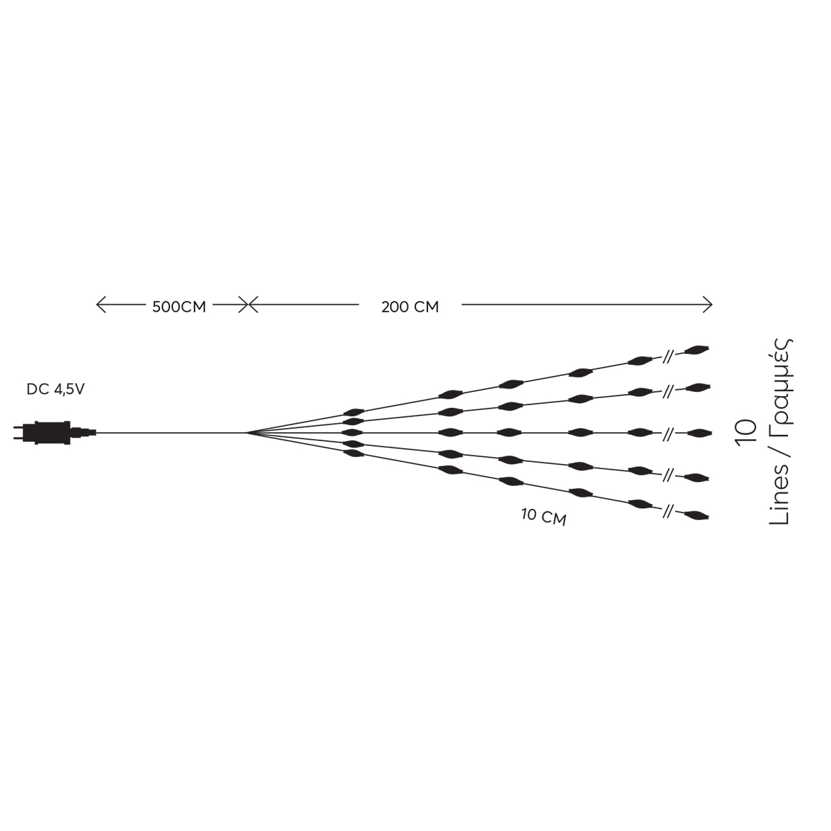 • Τεμάχια: 200 Χριστουγεννιάτικα Λαμπάκια Χαλκού Συνολικού Μήκους 7μ.