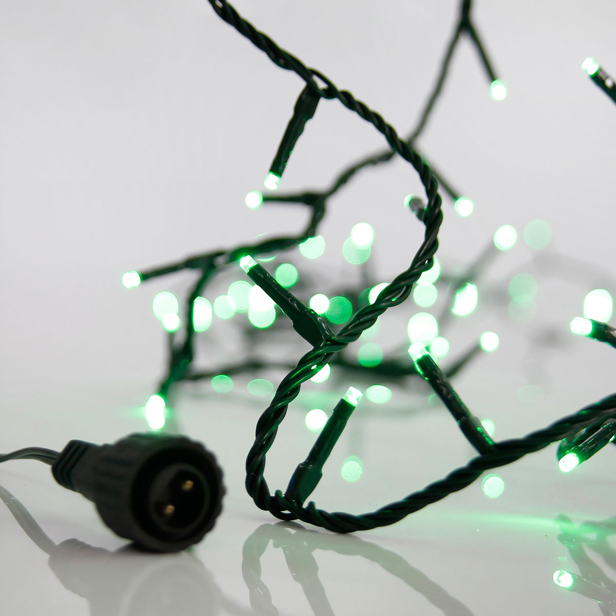 100 χριστουγεννιάτικα λαμπάκια Led με πράσινο φωτισμό από την εταιρεία Eurolamp. Έχουν βαθμό στεγανότητας IP44 που τα καθιστά κατάλληλα και για εξωτερικούς χώρους. Το καλώδιο είναι κατασκευασμένο από πλαστικό υλικό σε πράσινο χρώμα. Τα λαμπάκια έχουν μέγεθος 0.3εκ. έκαστος και έχουν απόσταση μεταξύ τους 5εκ. Το συνολικό μήκος είναι 8.1 μέτρα εκ των οποίων τα 3 μέτρα είναι καλώδιο επέκτασης με αντάπτορα. Έχει τη δυνατότητα επέκτασης με έως 3 καλώδια ίδιου τύπου. Διαθέτει ενσωματωμένες πλακέτες Led συνολικής ισχύος 3.6Watt, πράσινου φωτός (520K).
