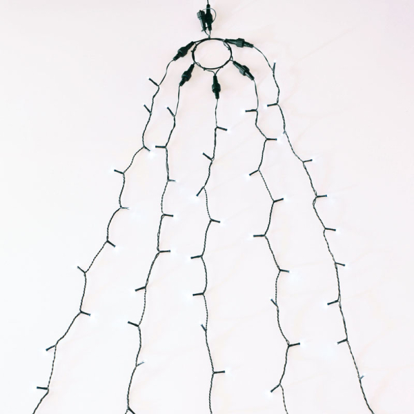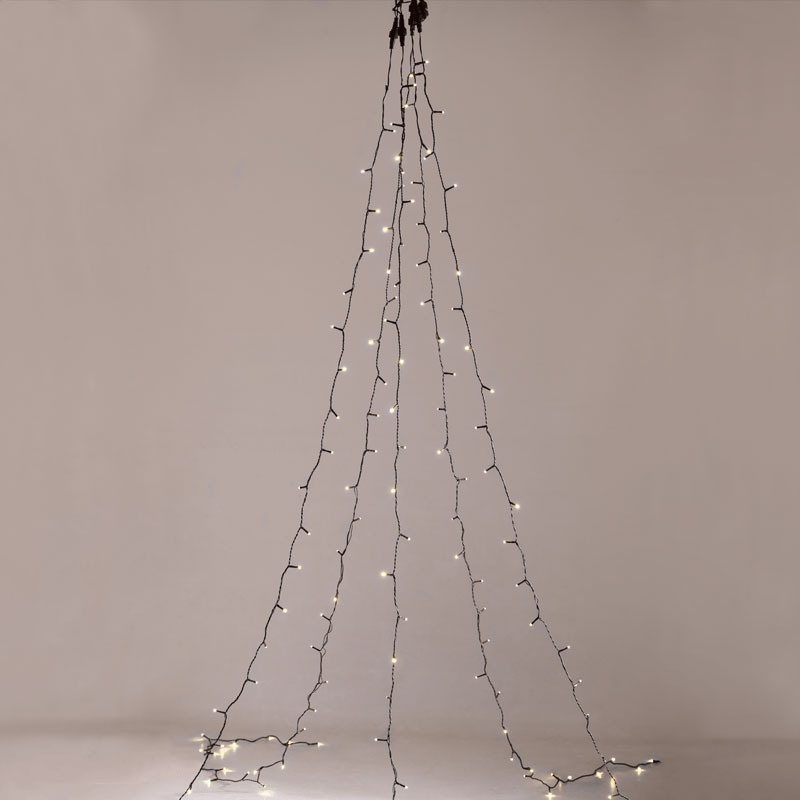 Χριστουγεννιάτικα λαμπάκια Led τύπου χταπόδι της εταιρείας Aca Decor με σταθερό φωτισμό. Αποτελείται από 5 σειρές με 35 λαμπάκια η κάθε μία και μήκος 3.5μ. Διαθέτουν επιπλέον 3 μέτρα πράσινο καλώδιο. Έχουν βαθμό στεγανότητας IP44 που τα καθιστά κατάλληλα και για εξωτερικούς χώρους. Λειτουργούν με ρεύμα. Διαθέτουν ενσωματωμένες πλακέτες Led συνολικής ισχύος 3.3Watt, θερμού λευκού φωτός (3000K).
