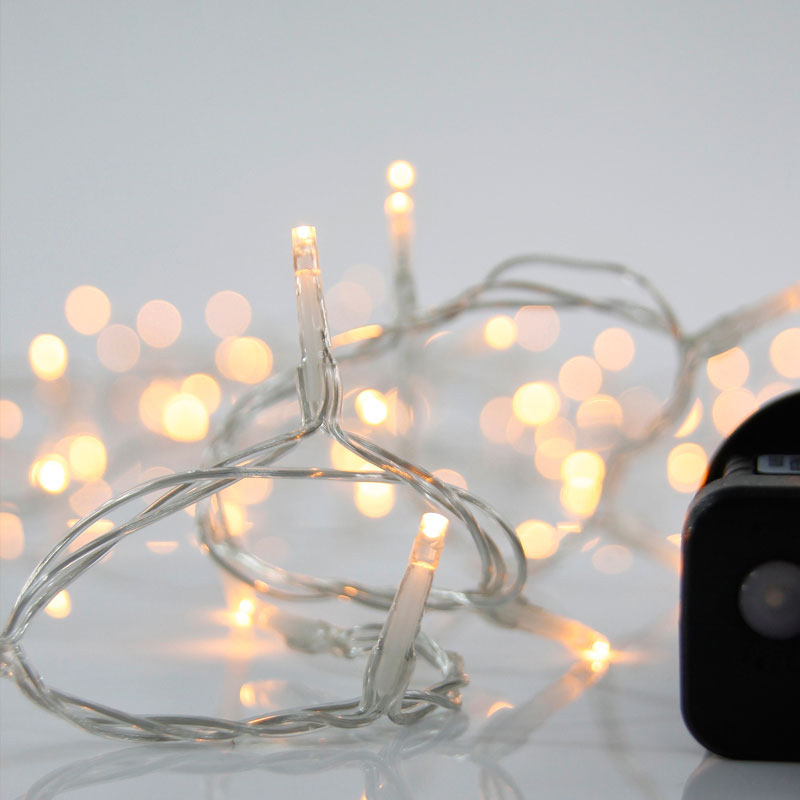 240 χριστουγεννιάτικα λαμπάκια Led με θερμό λευκό φωτισμό από την εταιρεία Eurolamp. Έχουν βαθμό στεγανότητας IP44 που τα καθιστά κατάλληλα και για εξωτερικούς χώρους. Το καλώδιο είναι κατασκευασμένο από PVC σε διάφανο χρώμα. Έχει 8 προγράμματα φωτισμού και μετασχηματιστή με μνήμη για να απομνημονεύει το πρόγραμμα που χρησιμοποιήσατε την τελευταία φορά. Τα λαμπάκια έχουν μέγεθος 0.3εκ. έκαστος και έχουν απόσταση μεταξύ τους 5εκ. Το συνολικό μήκος είναι 14.9 μέτρα εκ των οποίων τα 3 μέτρα είναι καλώδιο επέκτασης με αντάπτορα. Διαθέτει ενσωματωμένες πλακέτες Led συνολικής ισχύος 3.6Watt, λευκού θερμού φωτός (2200Κ-2300K).