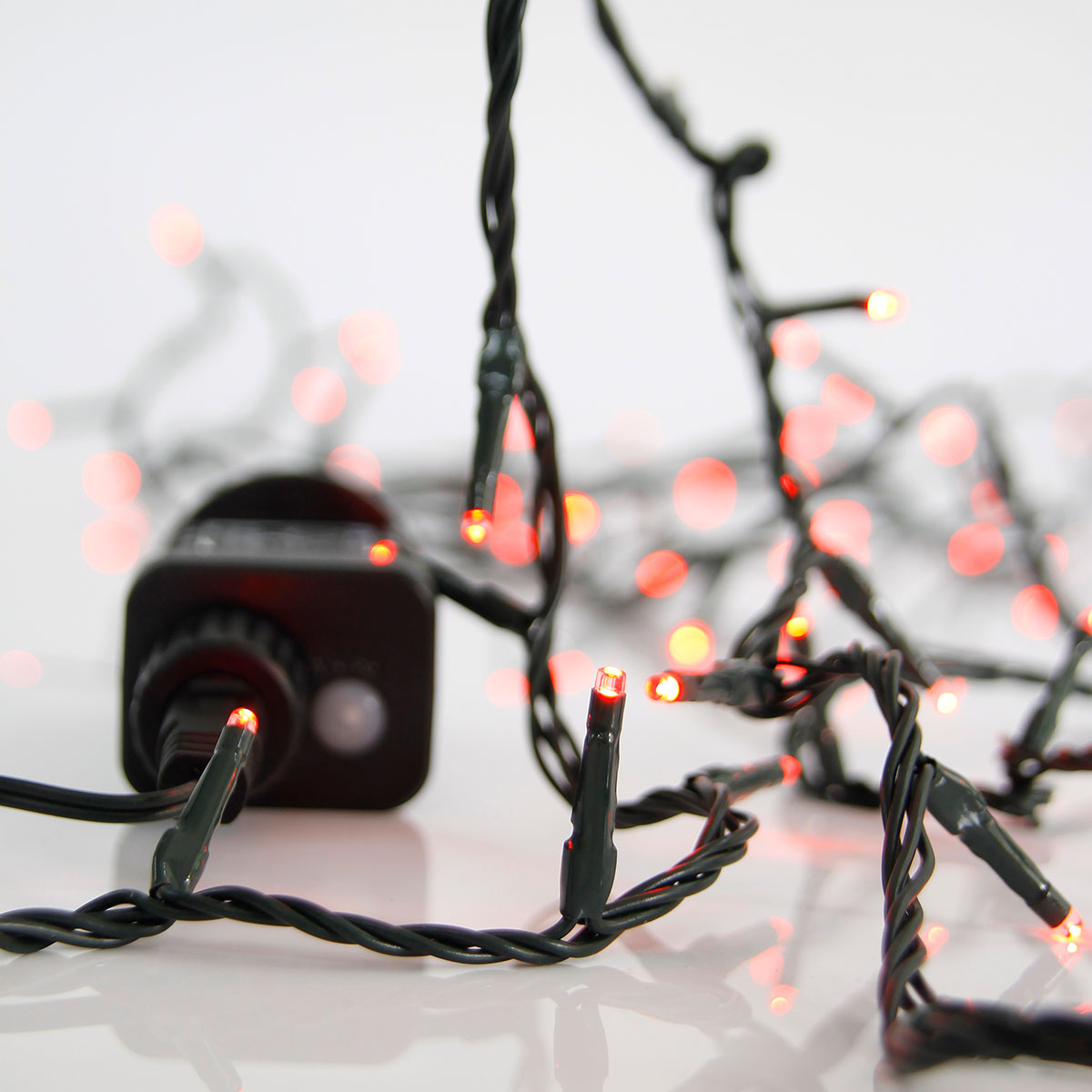 240 χριστουγεννιάτικα λαμπάκια Led με κόκκινο φωτισμό από την εταιρεία Eurolamp. Έχουν βαθμό στεγανότητας IP44 που τα καθιστά κατάλληλα και για εξωτερικούς χώρους. Το καλώδιο είναι κατασκευασμένο από PVC σε πράσινο χρώμα. Έχει 8 προγράμματα φωτισμού και μετασχηματιστή με μνήμη για να απομνημονεύει το πρόγραμμα που χρησιμοποιήσατε την τελευταία φορά. Τα λαμπάκια έχουν μέγεθος 0.3εκ. έκαστος και έχουν απόσταση μεταξύ τους 5εκ. Το συνολικό μήκος είναι 14.9 μέτρα εκ των οποίων τα 3 μέτρα είναι καλώδιο επέκτασης με αντάπτορα. Διαθέτει ενσωματωμένες πλακέτες Led συνολικής ισχύος 3.6Watt.