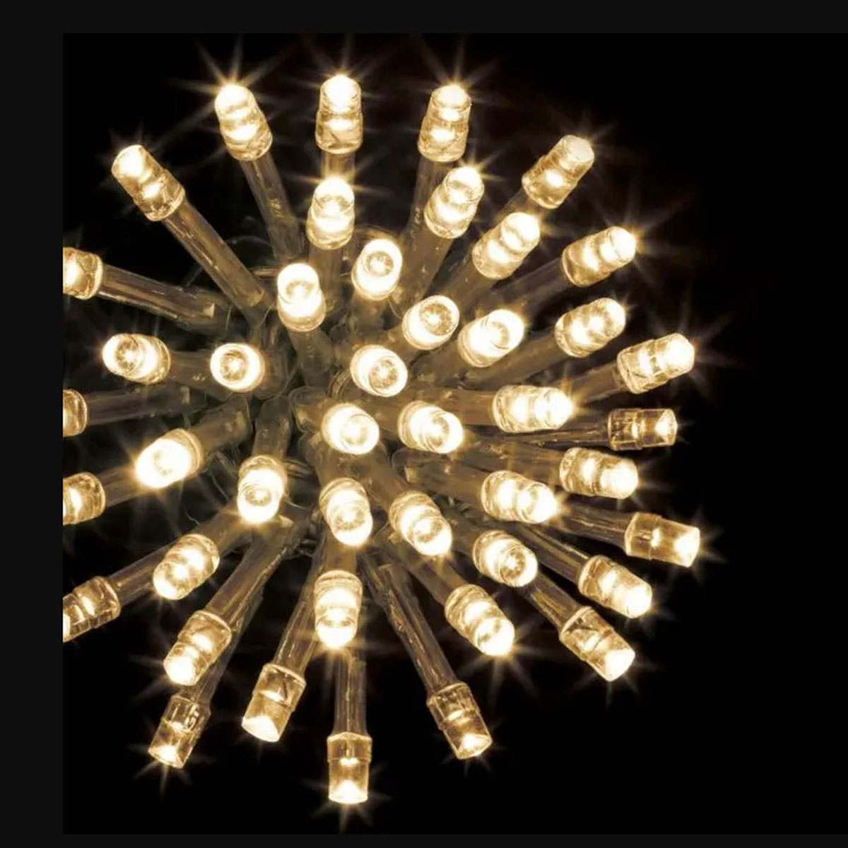 300 χριστουγεννιάτικα Led λαμπάκια με θερμό λευκό φως σε σειρά και διάφανο καλώδιο. Διαθέτει 8 προγράμματα και χρονοδιακόπτη. Πατώντας το κουμπί για 3 δευτερόλεπτα μέχρι να γίνει πράσινο, ο χρονοδιακόπτης ενεργοποιείται για 8 ώρες. Τα λαμπάκια μεταξύ τους έχουν απόσταση 10εκ. Είναι κατάλληλα για εσωτερικό και εξωτερικό χώρο.