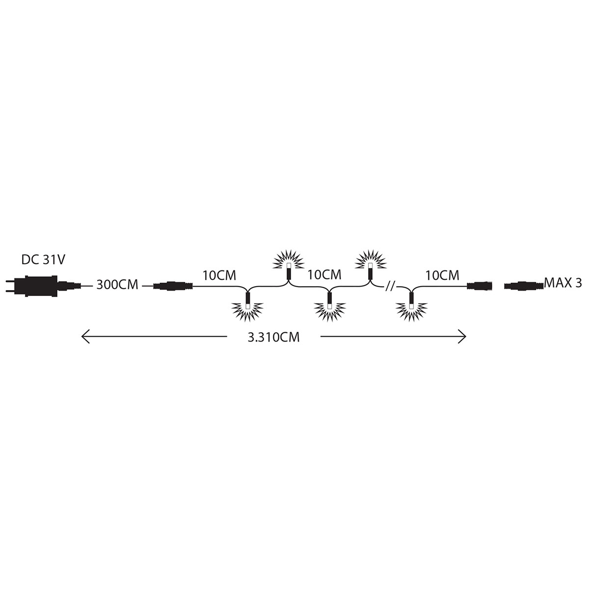 • Τεμάχια: 300 Χριστουγεννιάτικα Λαμπάκια Συνολικού Μήκους 33.1μ.