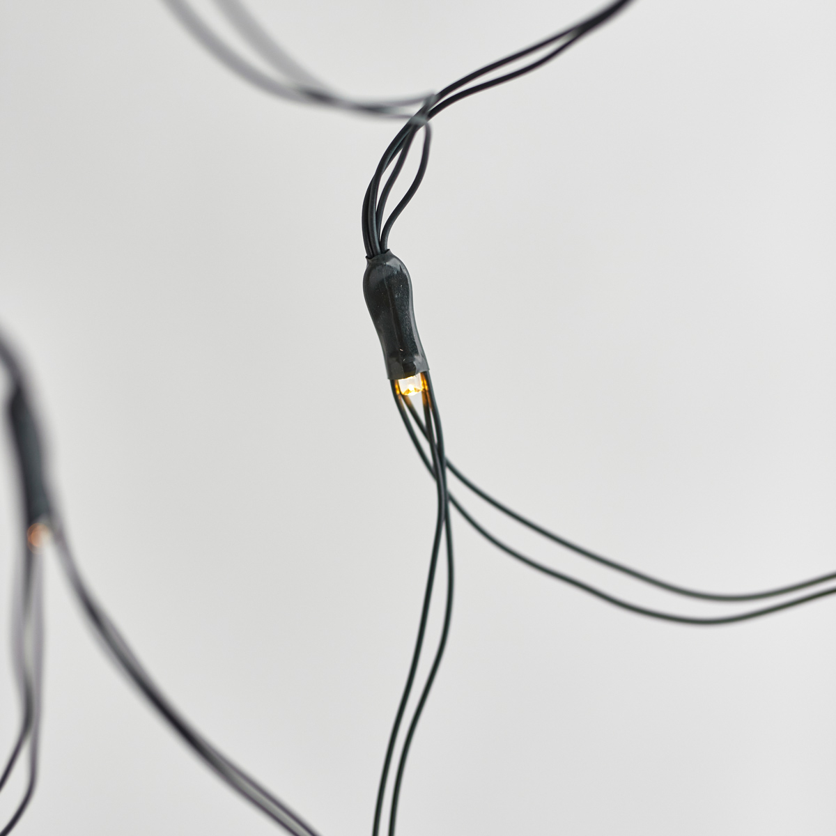 60 ηλιακά χριστουγεννιάτικα λαμπάκια Led τύπου βροχή με θερμό λευκό φωτισμό και πρόγραμμα από την εταιρεία Eurolamp. Έχουν βαθμό στεγανότητας IP44 που τα καθιστά κατάλληλα για εξωτερικούς χώρους. Το καλώδιο είναι κατασκευασμένο από πράσινο PVC υλικό. Τα λαμπάκια έχουν μέγεθος 0.5εκ. έκαστος και έχουν απόσταση μεταξύ τους 10εκ. Το συνολικό μήκος είναι 2 μέτρα εκ των οποίων το 1 μέτρο είναι καλώδιο επέκτασης και στο τέλος του καλωδίου έχει ηλιακό πάνελ. Διαθέτει ενσωματωμένες πλακέτες Led συνολικής ισχύος 0.5Watt, θερμού λευκού φωτός (2200Κ-2300K).