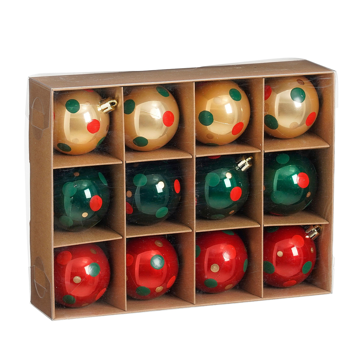 Χριστουγεννιάτικες μπάλες σε σετ από την εταιρεία Edelman. Το σετ περιλαμβάνει 4 κόκκινες μπάλες με κόκκινο-πράσινο σχέδιο, 4 πράσινες μπάλες με κόκκινο-πράσινο σχέδιο και 4 χρυσές μπάλες με κόκκινο-πράσινο σχέδιο. Είναι γυαλιστερές και κατασκευασμένες από ανακυκλωμένο πλαστικό υλικό για να μην σπάνε. Συνδυάστε διαφορετικά στολίδια για μία μοναδική γιορτινή διακόσμηση του δέντρου σας.