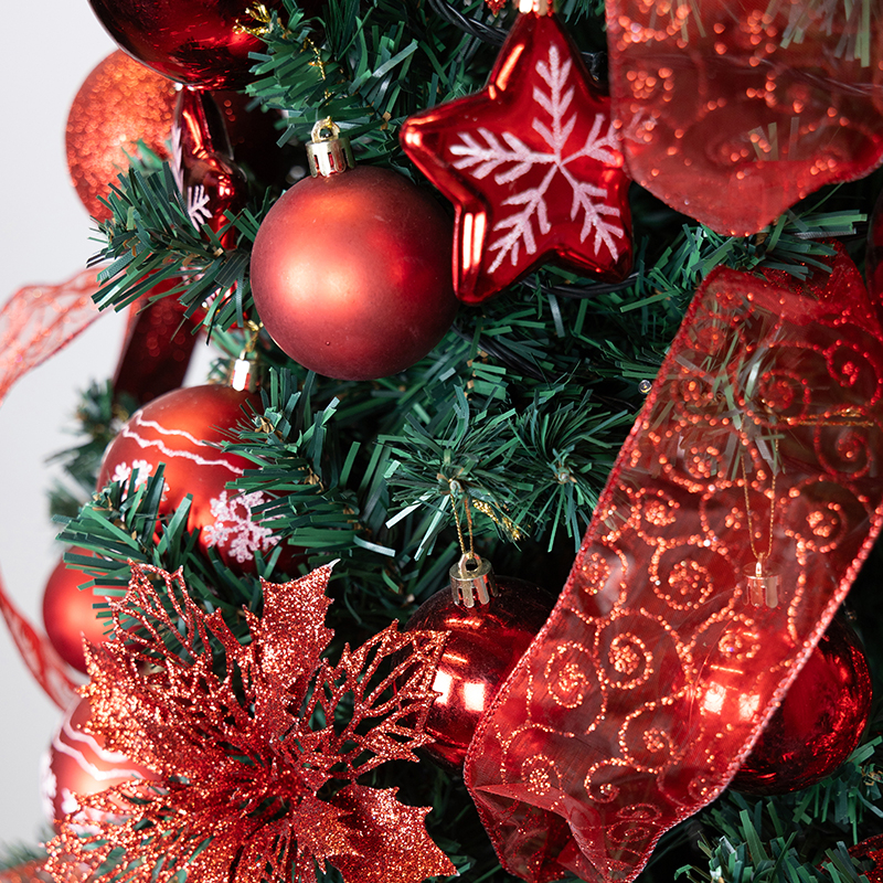 • Τεμάχια: 16 Μπάλες Φ6εκ., 1 Κορυφή 20εκ., 16 Μπάλες Φ4εκ., 48 Μπάλες Φ8εκ., 8 Μπάλες Φ4εκ., 8 Στολίδια Αστεράκια 5εκ., 8 Φιόγκοι 15εκ., 16 Διακοσμητικά Λουλούδια 15εκ., 4 Διακοσμητικά Κλαδιά 28εκ., 3 Κορδέλες 270εκ.Μx5εκ.Π