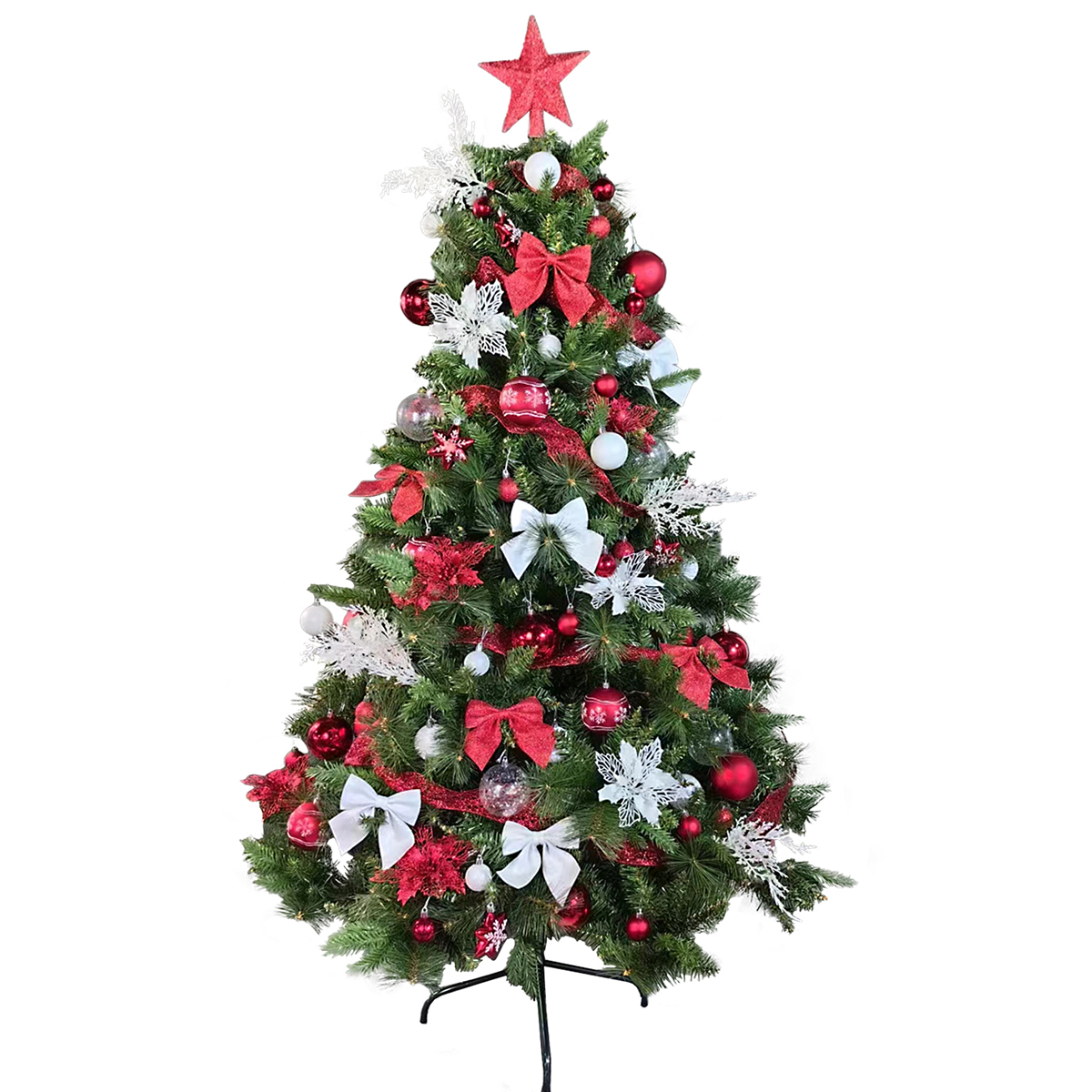 Χριστουγεννιάτικα στολίδια σετ 120 τεμαχίων με κορυφή αστέρι και χριστουγεννιάτικες μπάλες διαφόρων διαστάσεων από την εταιρεία Eurolamp. Το σετ περιλαμβάνει: 1 κορυφή, 16 μπάλες Φ4εκ., 16 μπάλες Φ6εκ., 48 μπάλες Φ8εκ., 8 μπάλες Φ4εκ.,8 στολίδια αστεράκια 5εκ., 8 φιόγκοι 15εκ., 16 διακοσμητικά λουλούδια 15εκ., 4 διακοσμητικά κλαδιά 28εκ., 3 κορδέλες 270εκ.Μx5εκ.Π. Στολίδια σε κόκκινο και λευκό χρώμα, με λεπτομέρειες γκλίτερ και κατασκευασμένες από πλαστικό υλικό. Αποκτήστε ένα σετ με στολίδια για να διακοσμήσετε εύκολα το δέντρο σας και να δημιουργήσετε μοναδική εορταστική ατμόσφαιρα. *ΤΟ ΔΕΝΤΡΟ ΔΕΝ ΠΕΡΙΛΑΜΒΑΝΕΤΑΙ.*