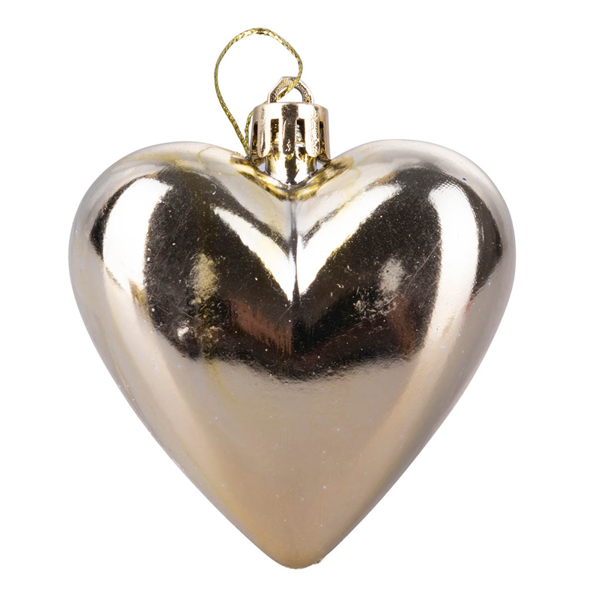 Χριστουγεννιάτικά στολίδια της ιταλικής εταιρίας Galileo σε χρυσό χρώμα και σχήμα καρδιάς. Κατασκευασμένα από πλαστικό υλικό με διάφορες υφές και χρυσό κορδόνι για να κρεμιούνται. Συνδυάστε διαφορετικά στολίδια στο δέντρο σας για ένα μοναδικό χριστουγεννιάτικο αποτέλεσμα.
