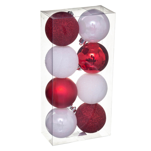 Χριστουγεννιάτικες Μπάλες (Σετ 8τμχ) A-S White/Red 129170RB