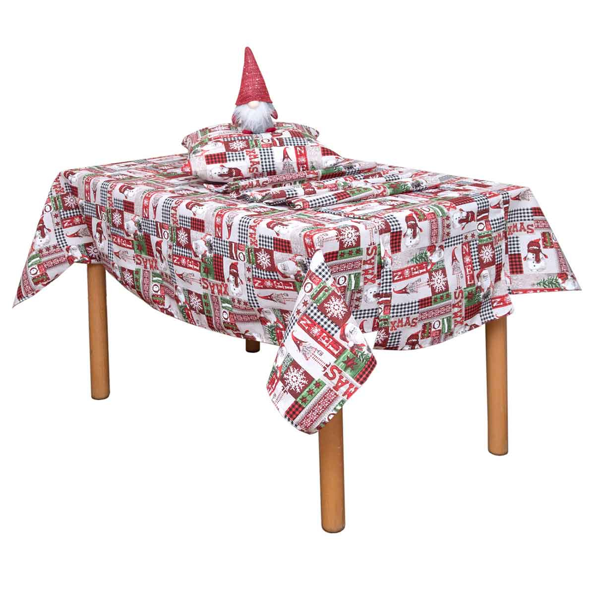 Τραβέρσες της εταιρείας Viopros με χριστουγεννιάτικο μοτίβο που θα χαρίσει γιορτινό κλίμα στον χώρο σας. Έχουν κόκκινο φόντο με πράσινες και λευκές τυπωτές λεπτομέρειες. Είναι κατασκευασμένες από ύφασμα, σύνθεσης 50% βαμβάκι και 50% polyester που το καθιστά ανθεκτικό στη χρήση και τις πλύσεις.