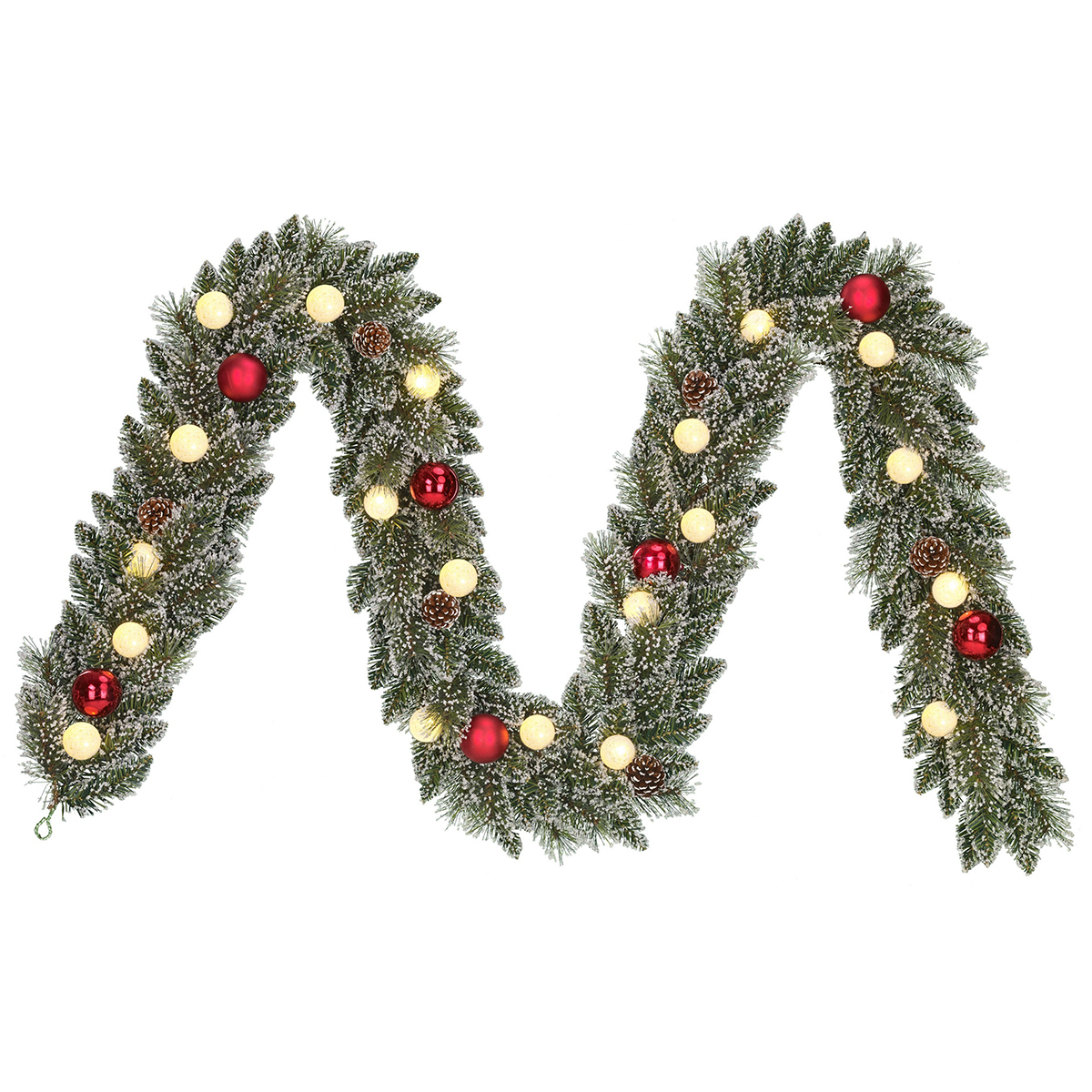 Χριστουγεννιάτικη γιρλάντα 270εκ. από την εταιρεία Edelman. Είναι κατασκευασμένη από PVC υλικό σε πράσινο χρώμα με χιονισμένο εφέ. Διαθέτει 180 κλαδιά με 20 φωτάκια led που τα διακοσμούν κουκουνάρια και κόκκινες Χριστουγεννιάτικες μπάλες. Τα φωτάκια led λειτουργούν με χρονοδιακόπτη. Τοποθετήστε την σε παράθυρο, πάνω σε έπιπλο ή όπου επιθυμείτε για να δώσετε στον χώρο σας το απόλυτο γιορτινό κλίμα. Λειτουργεί με μπαταρίες ΑΑ που δεν περιλαμβάνονται.