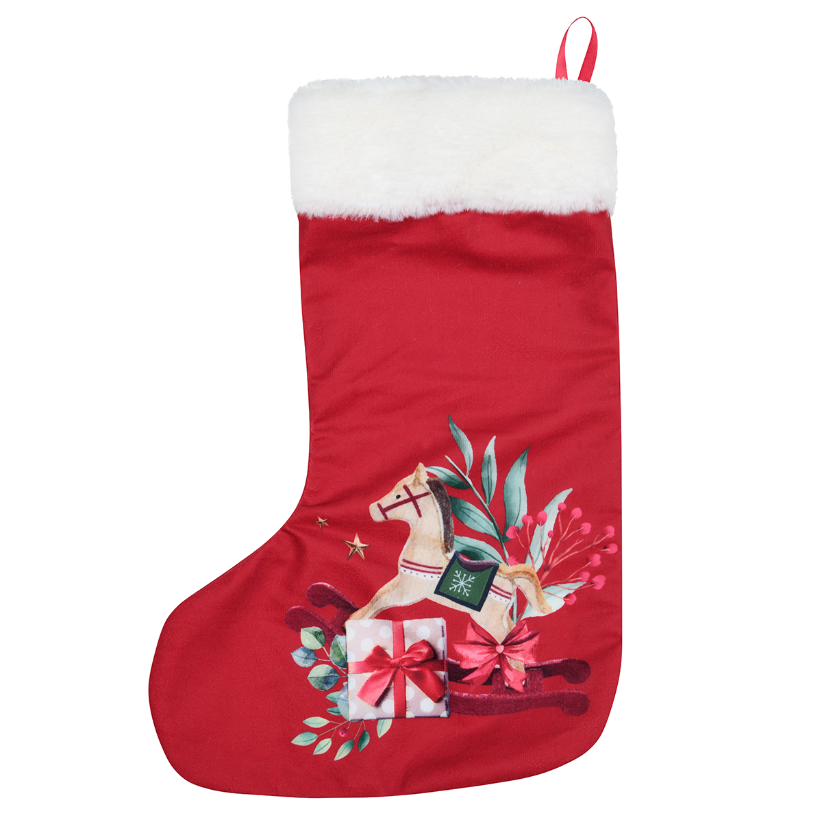 Χριστουγεννιάτικη κάλτσα με πολύχρωμη Χριστουγεννιάτικη παράσταση. Είναι κατασκευασμένη από βελουτέ πολυεστερικό ύφασμα σε κόκκινο χρώμα με λευκό γουνάκι στο επάνω μέρος. Διαθέτει θηλιά για να την κρεμάσετε. Διακοσμήστε τον χώρο σας με χριστουγεννιάτικες κάλτσες και δημιουργήσετε μία μοναδική εορταστική ατμόσφαιρα. Συνδυάστε τη με τα υπόλοιπα είδη του ίδιου σετ για να δημιουργήστε ένα ξεχωριστό στυλ.