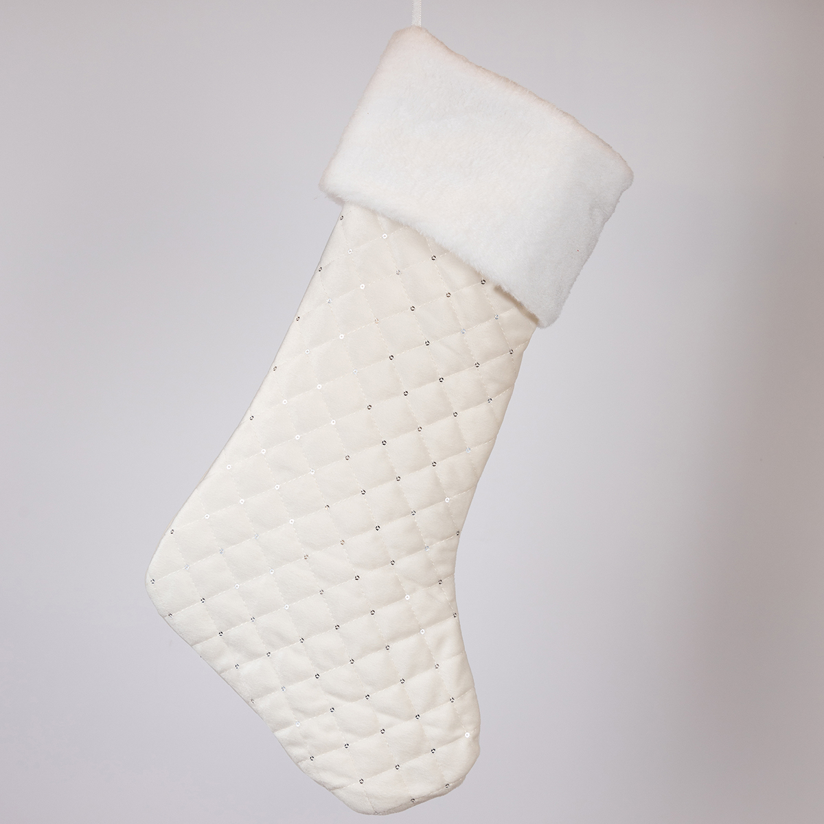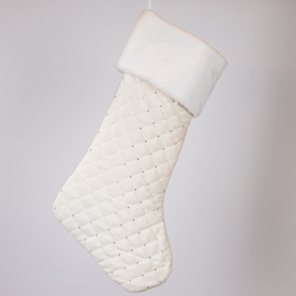Χριστουγεννιάτικη κάλτσα από την εταιρεία Eurolamp. Είναι κατασκευασμένη από καπιτονέ πολυεστερικό ύφασμα σε λευκό χρώμα και λεπτομέρειες από λευκό γουνάκι στο επάνω μέρος. Διαθέτει θηλιά για να την κρεμάσετε. Διακοσμήστε τον χώρο σας με χριστουγεννιάτικες κάλτσες και δημιουργήσετε μία μοναδική εορταστική ατμόσφαιρα.
