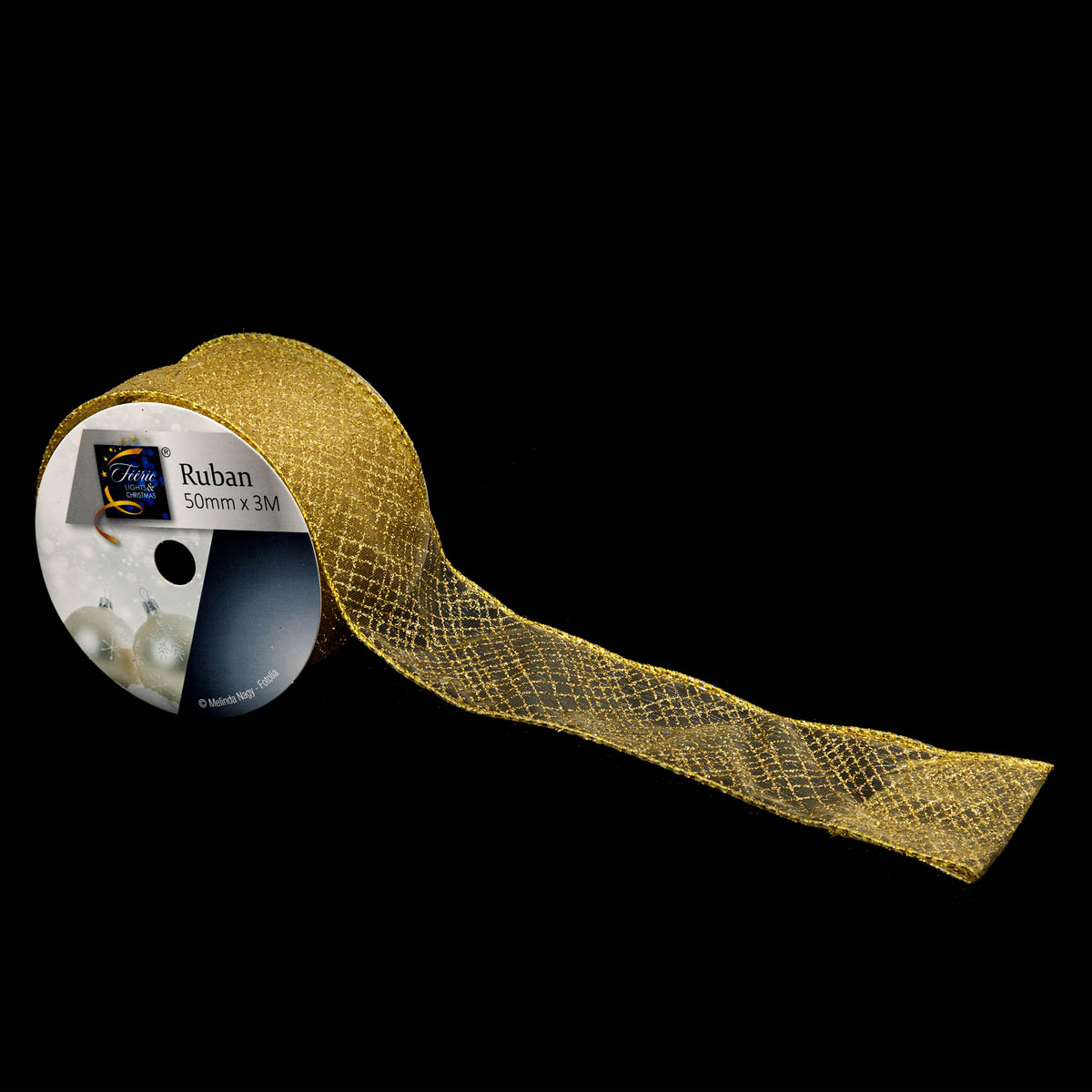 Χριστουγεννιάτικη κορδέλα της εταιρείας σε χρυσό χρώμα με γκλίτερ. Είναι κατασκευασμένη από λεπτό ύφασμα polyester. Στολίστε την στο δέντρο σας ή τυλίξτε με αυτήν τα δώρα για τους αγαπημένους σας.