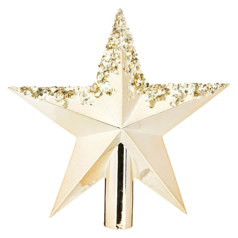 Κορυφή - αστέρι για το χριστουγεννιάτικο δέντρο σε χρυσό χρώμα με πούλιες. Είναι κατασκευασμένη από πλαστικό υλικό. Θα κάνει το δέντρο σας να ξεχειλίσει με το πνεύμα των Χριστουγέννων!