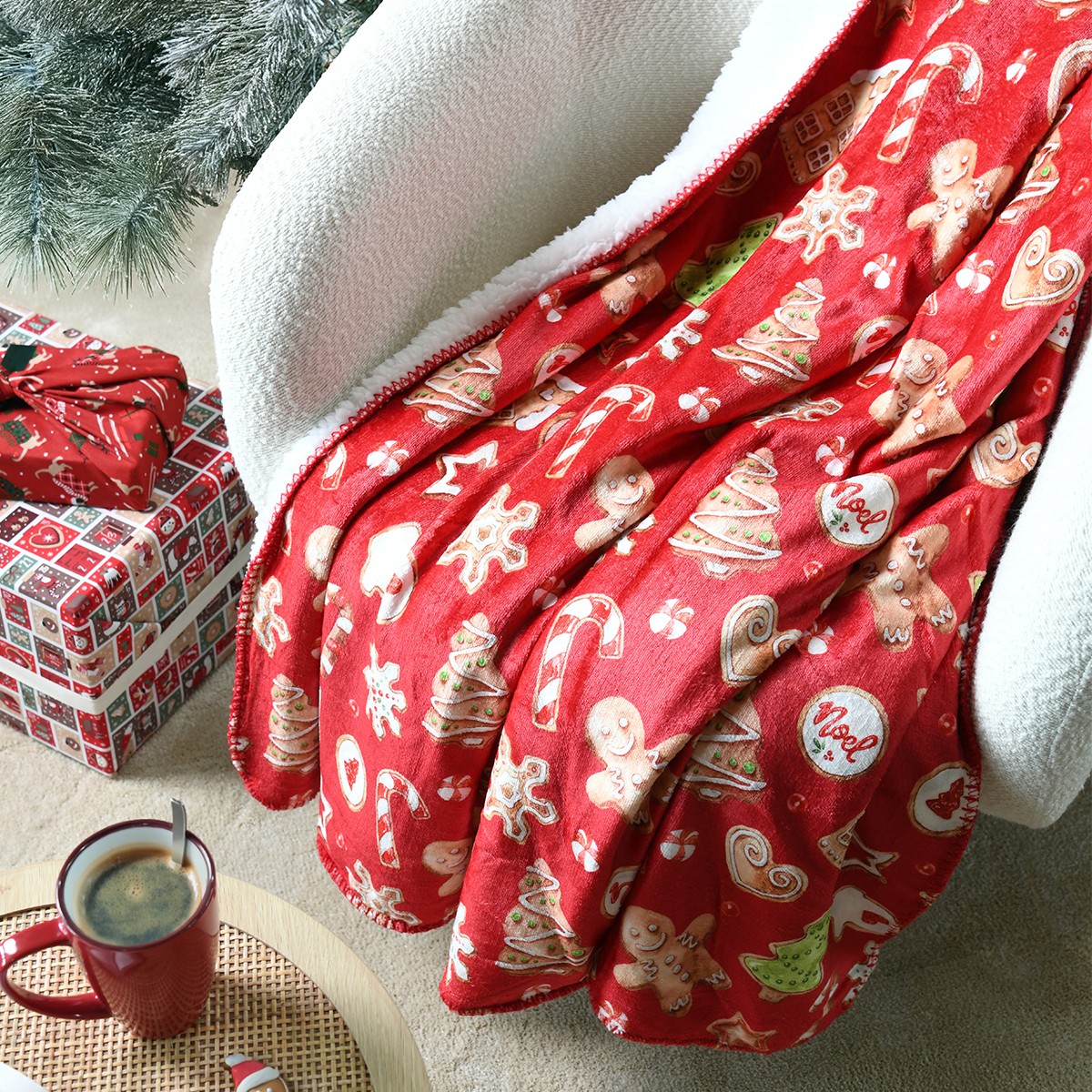 | SpitishopΧριστουγεννιάτικη Κουβέρτα Καναπέ (130x160) S-F Hohoho Multicolore P2D935100