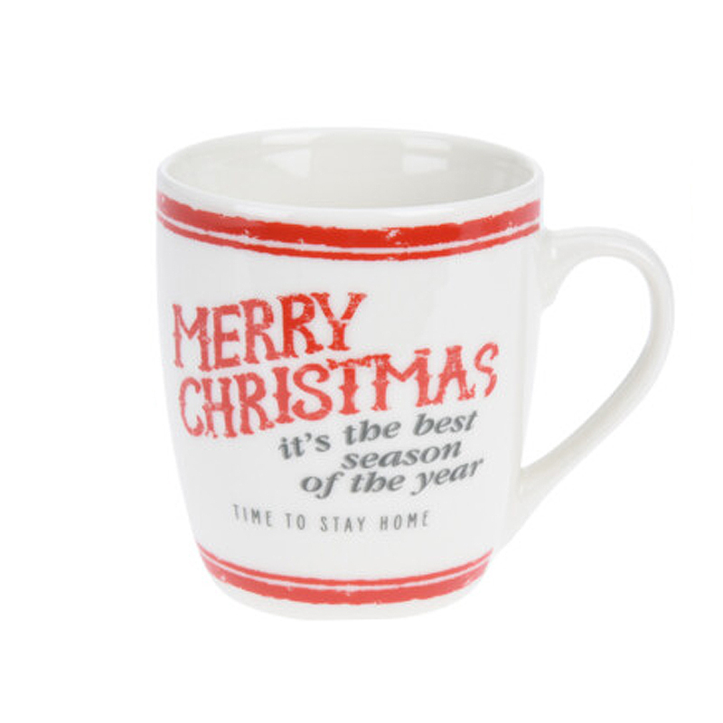 Χριστουγεννιάτικη κούπα από πορσελάνη σε λευκό-κόκκινο χρώμα με μοντέρνο σχέδιο και γκρι λεπτομέρειες. Ιδανική για να απολαύσετε οποιοδήποτε ζεστό ρόφημα ή καφέ κατά την εορταστική περίοδο. Χωρητικότητας 200ml.