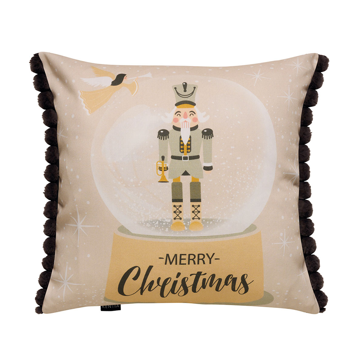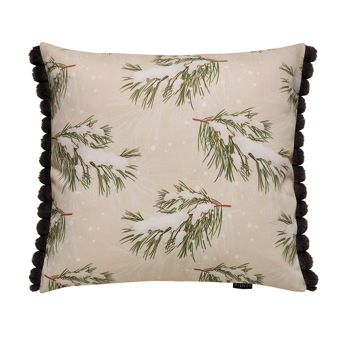 Χριστουγεννιάτικη μαξιλαροθήκη διπλής όψης από την εταιρεία Kentia. Είναι κατασκευασμένη από 60% βαμβάκι-40% polyester σε εκρού-μπεζ χρώμα με πράσινες-λευκές λεπτομέρειες. Διαθέτει διακοσμητικές φουντίτσες στα πλάγια. Ιδανική για να εμπλουτίσει την εορταστική ατμόσφαιρα στον χώρο σας.