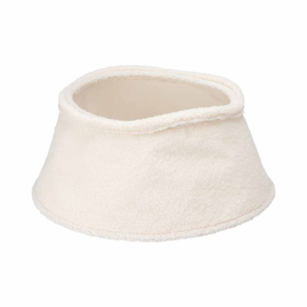 Ποδιά δέντρου σε λευκό χρώμα κατασκευασμένη από 100% polyester μπουκλέ ύφασμα. Η διάμετρός της είναι 40εκ. στο πάνω μέρος και 60εκ. στο κάτω. Μπορείτε να την τοποθετήσετε κάτω από το χριστουγεννιάτικο δέντρο για να κρύψετε ανεπιθύμητα καλώδια και τη βάση του.