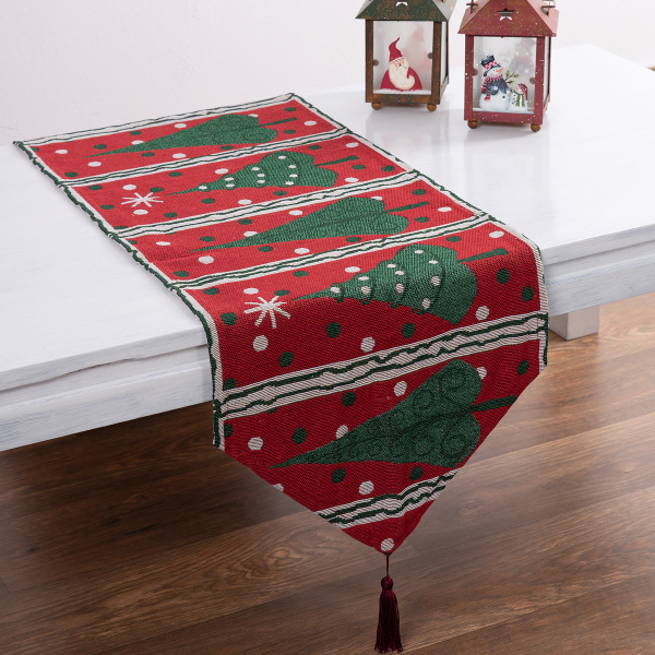 Χριστουγεννιάτικο runner από την εταιρεία Silk Fashion. Έχει πράσινο χρώμα με κκόκκινες λεπτομέρειες και χριστουγεννιάτικο σχέδιο. Η σύνθεσή του είναι από 100% chenille. Ιδανικό για να στολίσετε τον χώρο σας τις γιορτές.