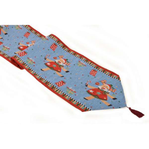 Χριστουγεννιάτικο runner από την εταιρεία Silk Fashion. Έχει γαλάζιο χρώμα με κκόκκινες-εκρού λεπτομέρειες και χριστουγεννιάτικο σχέδιο. Είναι κατασκευασμένο από 100% chenille. Ιδανικό για να στολίσετε τον χώρο σας τις γιορτές.
