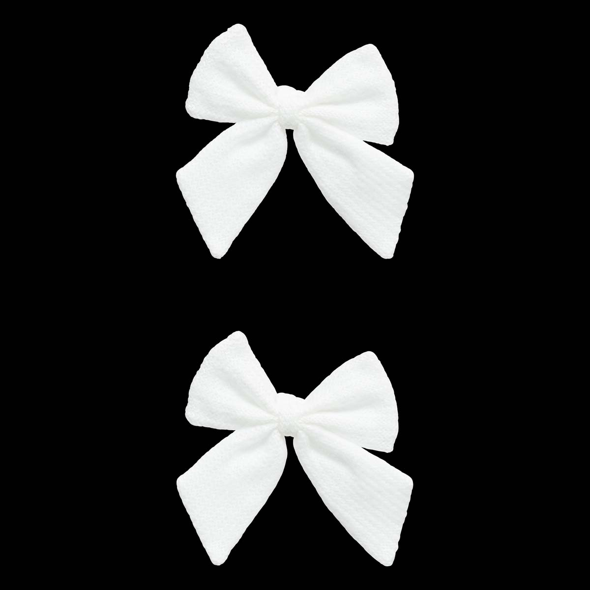 Χριστουγεννιάτικοι φιόγκοι 2 τεμάχια σε λευκό χρώμα. Είναι υφασμάτινοι, κατασκευασμένοι από polyester. Ιδανικοί για να τους στολίσετε στο δέντρο σας ή σε οποιοδήποτε άλλο σημείο του σπιτιού, δίνοντας μία επιπλέον λάμψη στην χριστουγεννιάτικη διακόσμηση.