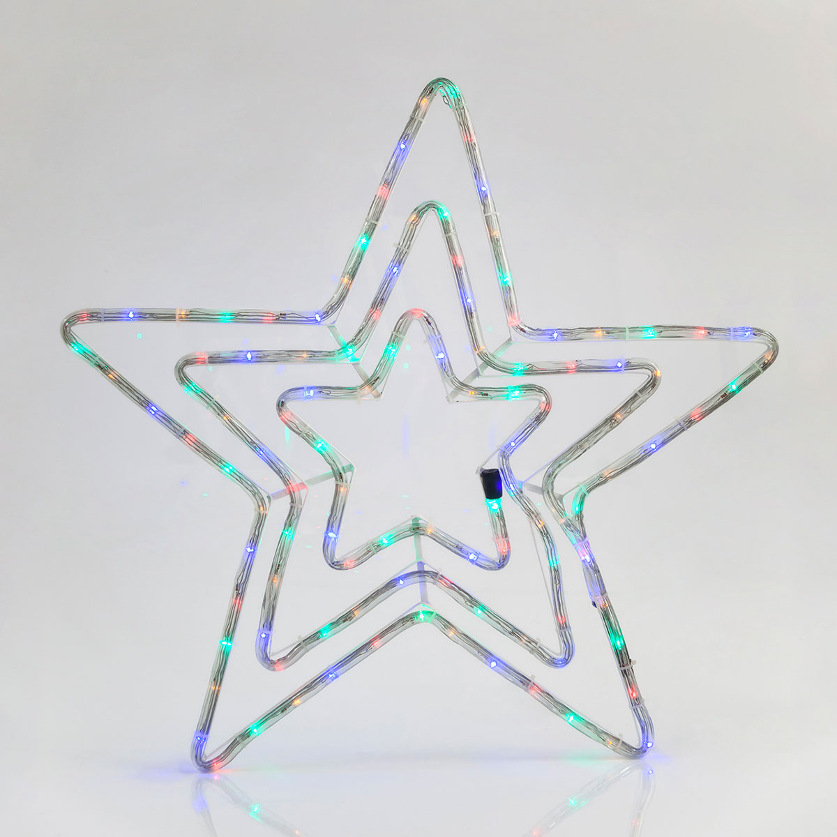 Χριστουγεννιάτικο διακοσμητικό σε σχήμα αστεριού με φωτοσωλήνα από την εταιρεία Eurolamp. Έχει 120 πολύχρωμα Led λαμπάκια και 1.5μ μαύρο διαθέσιμο καλώδιο με αντάπτορα. Με προγράμματα λειτουργίας και βαθμό στεγανότητας IP44 που το καθιστά κατάλληλο για εσωτερικούς και εξωτερικούς χώρους. Λειτουργεί με ρεύμα. Διαθέτει ενσωματωμένες πλακέτες Led συνολικής ισχύος 12Watt.