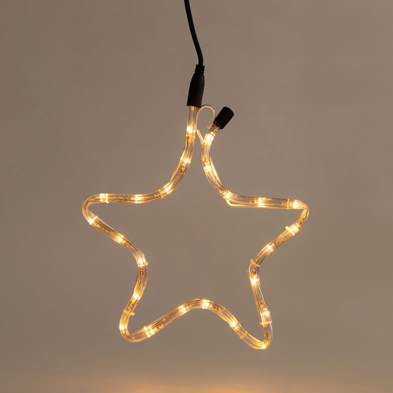 Χριστουγεννιάτικο διακοσμητικό σε σχήμα αστεριού με φωτοσωλήνα από την εταιρεία Eurolamp. Έχει 24 Led λαμπάκια και 1.5μ μαύρο διαθέσιμο καλώδιο με αντάπτορα. Με βαθμό στεγανότητας IP44 που το καθιστά κατάλληλο για εσωτερικούς και εξωτερικούς χώρους. Λειτουργεί με ρεύμα. Διαθέτει ενσωματωμένες πλακέτες Led συνολικής ισχύος 4Watt, θερμού λευκού φωτός (2700K-3000Κ).