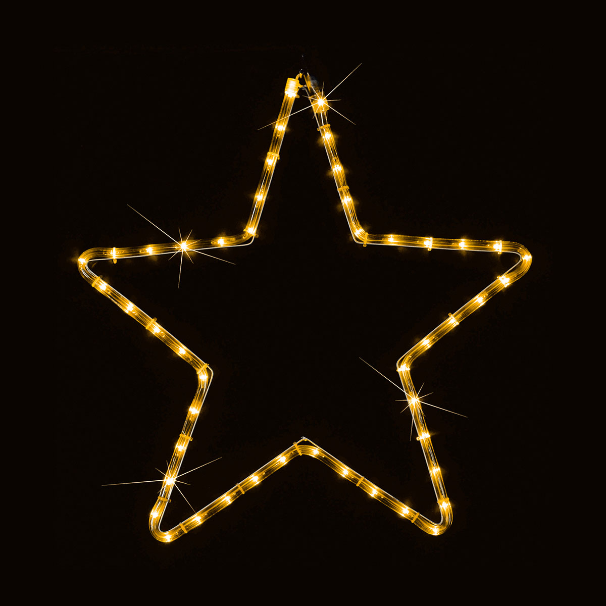 Χριστουγεννιάτικο διακοσμητικό σε σχήμα αστεριού με φωτοσωλήνα από την εταιρεία Eurolamp. Έχει 48 Led λαμπάκια και 1.5μ μαύρο διαθέσιμο καλώδιο με αντάπτορα. Με βαθμό στεγανότητας IP44 που το καθιστά κατάλληλο για εσωτερικούς και εξωτερικούς χώρους. Λειτουργεί με ρεύμα. Διαθέτει ενσωματωμένες πλακέτες Led συνολικής ισχύος 4Watt, θερμού λευκού φωτός (2600K-3000Κ).
