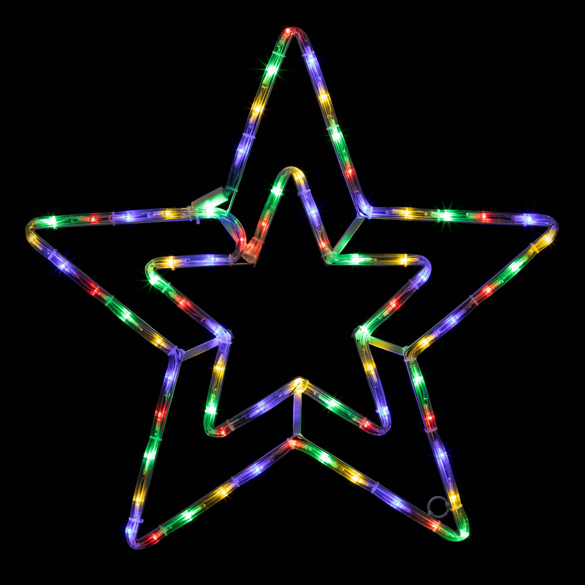 Χριστουγεννιάτικο αστέρι με φωτοσωλήνα από PVC. Διαθέτει 72 πολύχρωμα Led λαμπάκια με σταθερό φωτισμό. Μπορεί να τοποθετηθεί και σε εξωτερικό χώρο δίνοντας μία μαγική ατμόσφαιρα στον κήπο ή το μπαλκόνι σας.
