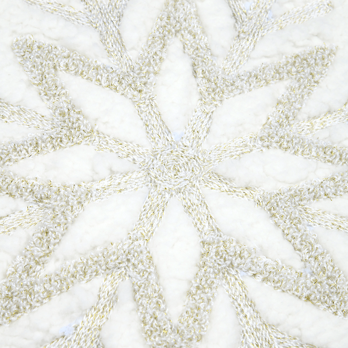 Χριστουγεννιάτικο μαξιλάρι με γούνινη υφή σε λευκό χρώμα με απαλό χρυσό σχέδιο με χιονονιφάδα. Το εξωτερικό ύφασμα είναι κατασκευασμένο από polyester, ενώ το εσωτερικό γέμισμα είναι πολυεστερική βάτα. Στολίστε το σε οποιονδήποτε χώρο του σπιτιού και δώστε μία μοναδική Χριστουγεννιάτικη ατμόσφαιρα. Συνδυάστε το με τα υπόλοιπα είδη της ίδιας σειράς για ένα ολοκληρωμένο αποτέλεσμα.