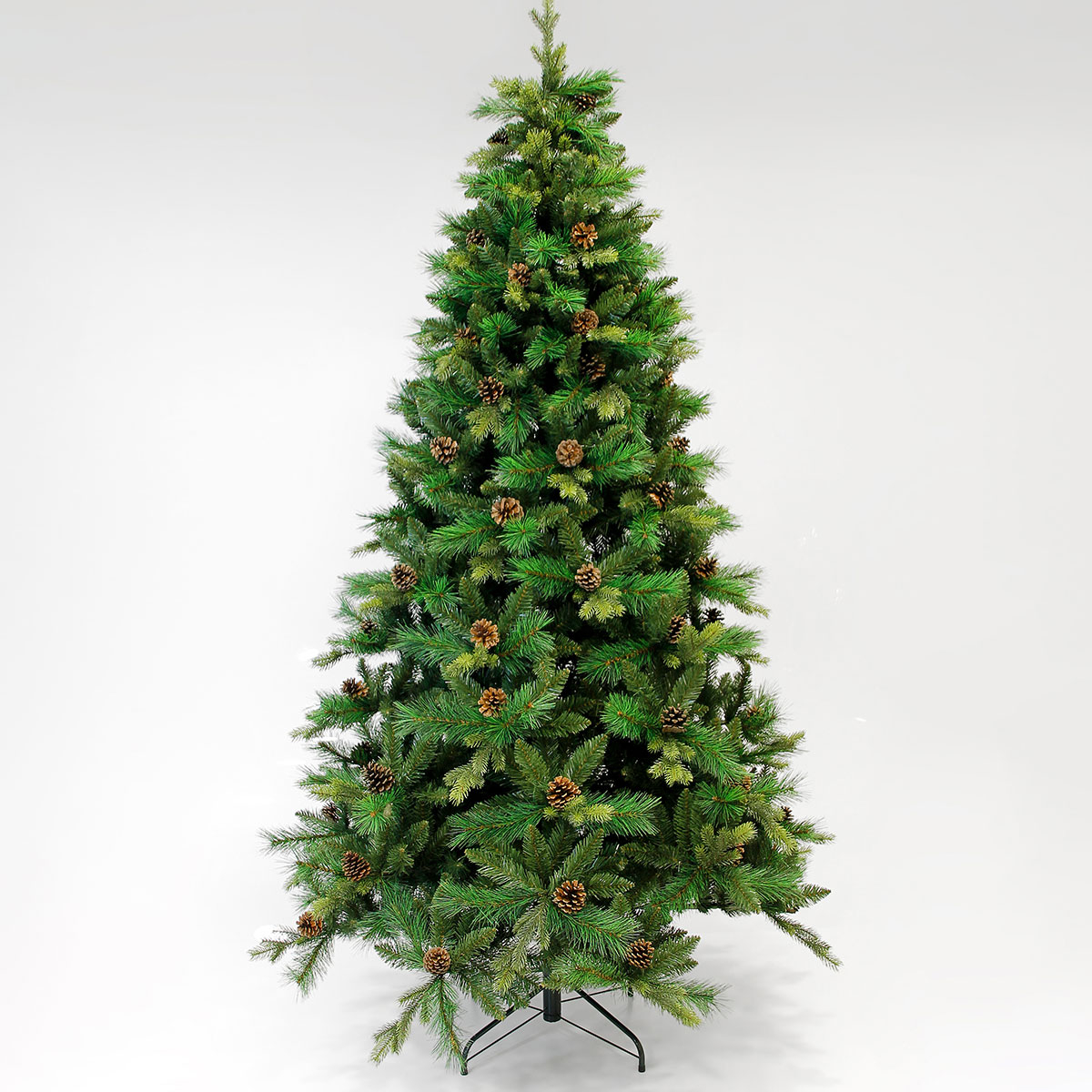 Χριστουγεννιάτικο δέντρο κλασικό από την εταιρεία Eurolamp σε πράσινο χρώμα με διακοσμητικά κουκουνάρια. Έχει 109εκ. διάμετρο, 180εκ. ύψος και 1140 κλαδιά συνολικά. Έχει δύο είδη φυλλώματος από πλαστικό και PVC και διαθέτει μεταλλική βάση στήριξης. Συνολικό βάρος δέντρου: 8 κιλά. Τοποθέτηση κλαδιών: Ομπρέλα.