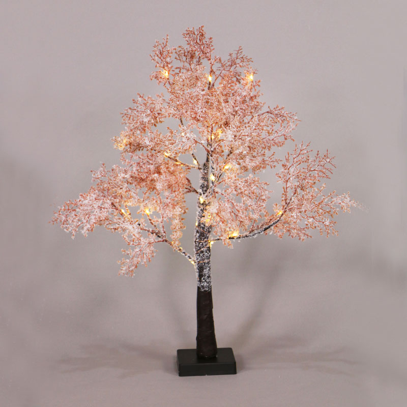 Χριστουγεννιάτικο δέντρο της εταιρείας Aca Decor με ύψος 60εκ. Είναι σε ροζ χρώμα με χιονισμένο εφέ. Διαθέτει 29 ενσωματωμένα λαμπάκια Led σταθερά, θερμού λευκού φωτός. Είναι κατάλληλο για όλους τους εσωτερικούς χώρους. Λειτουργεί με 3 μπαταρίες AA (δεν περιλαμβάνονται). Έχει ενσωματωμένες πλακέτες Led συνολικής ισχύος 1.12Watt, λευκού θερμού φωτός (3000K).