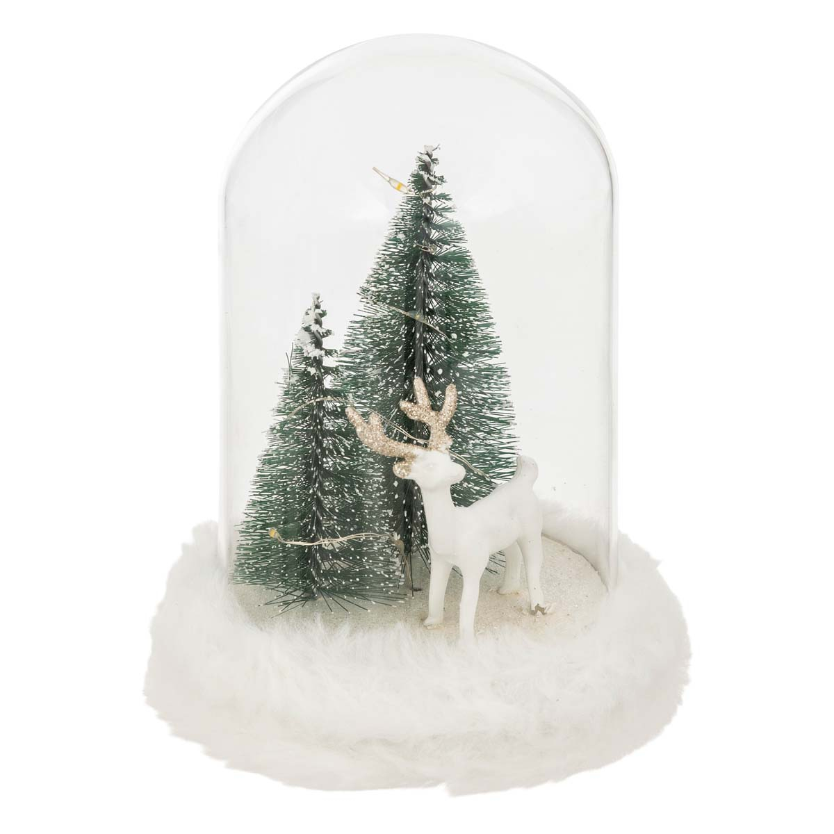 Διακοσμητικό χριστουγεννιάτικο με φως, μέσα σε γυάλα. Είναι κατασκευασμένο από MDF_Ε1 και γούνα στο κάτω μέρος. Λειτουργεί με 2 μπαταρίες ΑΑΑ (δεν περιλαμβάνονται). Ιδανικό για να δώσει γιορτινή ατμόσφαιρα σε κάθε χώρο του σπιτιού.