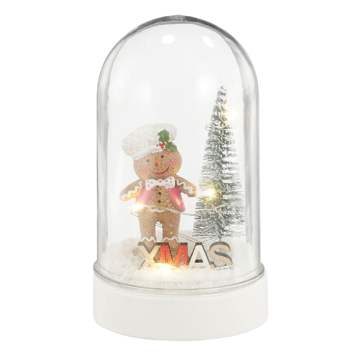 Χριστουγεννιάτικος διακοσμητικός θόλος με gingerbread cookie, από την εταιρεία Edelman. Είναι κατασκευασμένος από διάφανο πλαστικό υλικό με λευκή βάση και πολύχρωμες λεπτομέρειες. Διαθέτει Led λαμπάκια με θερμό λευκό φωτισμό και διακόπτη ON/OFF. Λειτουργεί με μπαταρίες (δεν περιλαμβάνονται). Δημιουργήστε τη Χριστουγεννιάτικη διακόσμηση και την εορταστική ατμόσφαιρα που ταιριάζει στο δικό σας στυλ. Συνδυάστε το με τα υπόλοιπα είδη της σειράς για ένα ολοκληρωμένο αποτέλεσμα.