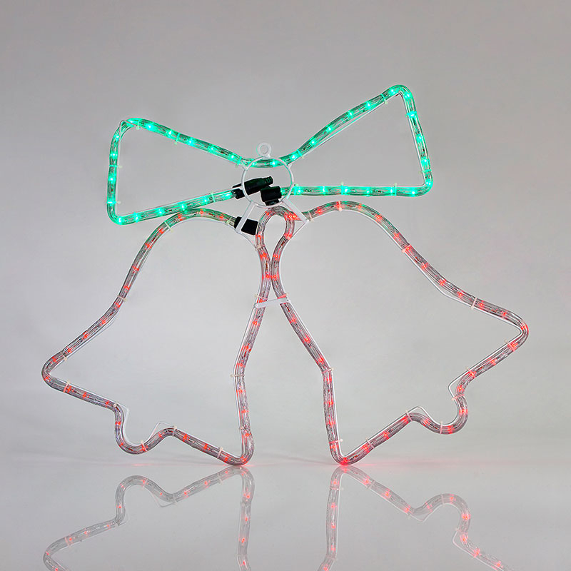 Χριστουγεννιάτικο διακοσμητικό σε σχήμα καμπάνας με φωτοσωλήνα από την εταιρεία Eurolamp. Έχει 108 πολύχρωμα Led λαμπάκια και 1.5μ μαύρο διαθέσιμο καλώδιο με αντάπτορα. Με προγράμματα λειτουργίας και βαθμό στεγανότητας IP44 που το καθιστά κατάλληλο για εσωτερικούς και εξωτερικούς χώρους. Λειτουργεί με ρεύμα. Διαθέτει ενσωματωμένες πλακέτες Led συνολικής ισχύος 12Watt, κόκκινου και πράσινου φωτισμού.