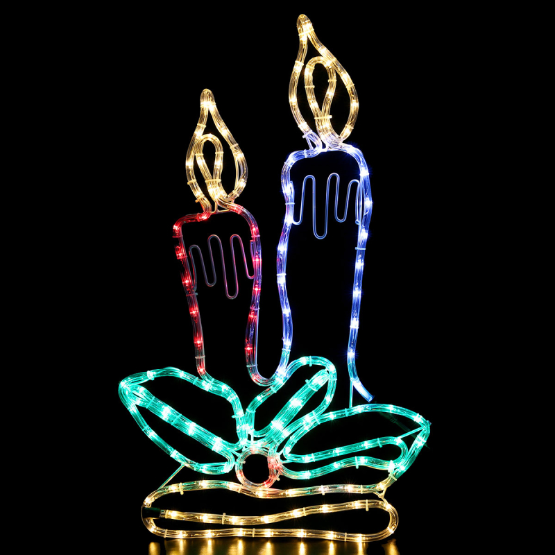 Χριστουγεννιάτικο διακοσμητικό σε σχήμα κεριών με φωτοσωλήνα από την εταιρεία Eurolamp. Έχει 144 πολύχρωμα Led λαμπάκια και 1.5μ μαύρο διαθέσιμο καλώδιο με αντάπτορα. Με προγράμματα λειτουργίας και βαθμό στεγανότητας IP44 που το καθιστά κατάλληλο για εσωτερικούς και εξωτερικούς χώρους. Λειτουργεί με ρεύμα. Διαθέτει ενσωματωμένες πλακέτες Led συνολικής ισχύος 8Watt.