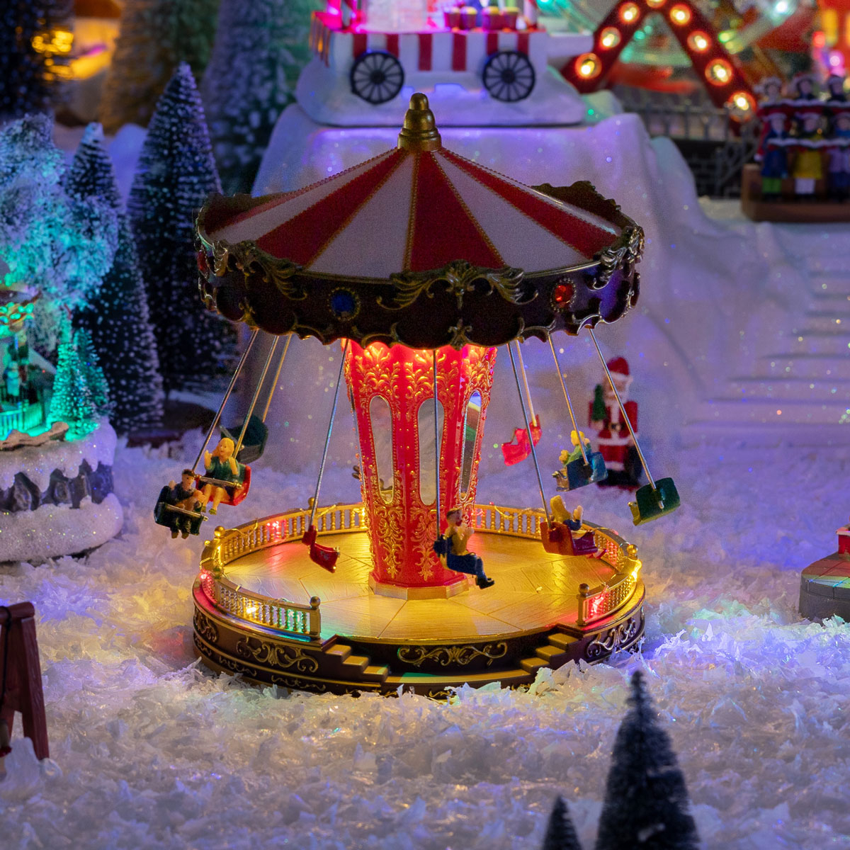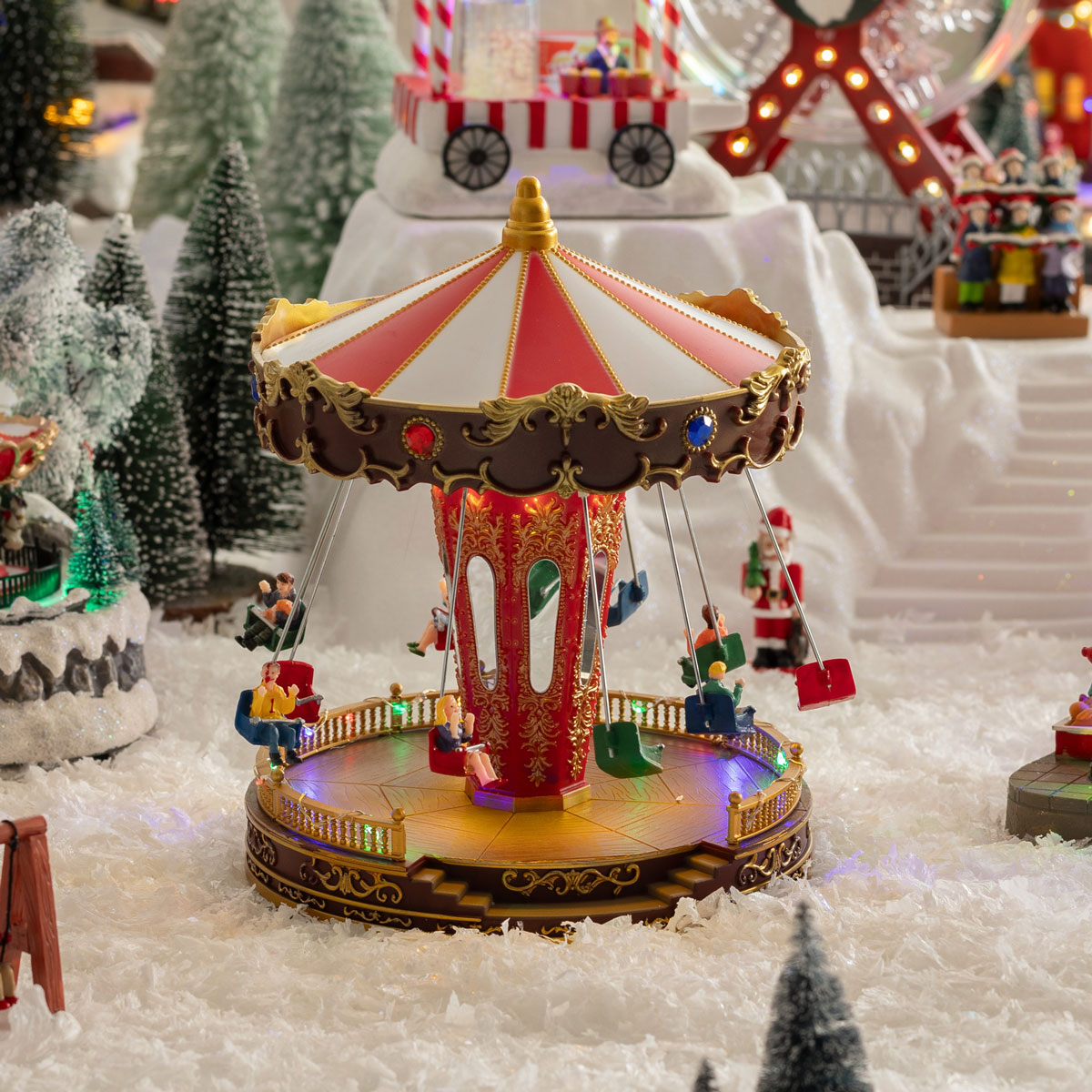 Χριστουγεννιάτικο καρουζέλ κατασκευασμένο από πλαστικό υλικό με κινούμενα μέρη και μουσική. Διαθέτει 20 πολύχρωμα Led λαμπάκια με σταθερό φωτισμό. Λειτουργεί με ρεύμα. Δημιουργήστε το δικό σας χριστουγεννιάτικο χωριό συλλέγοντας διάφορα διακοσμητικά σπιτάκια και φιγούρες για ένα μοναδικό αποτέλεσμα.