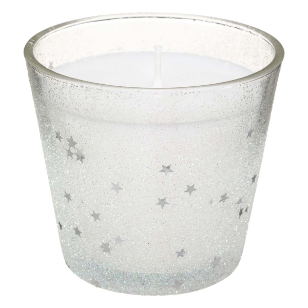 Κερί χωρίς άρωμα σε λευκό χρώμα με γκλίτερ και αστεράκια. Έχει βάρος 190gr και χρόνο καύσης 30 ώρες. Διακοσμήστε το στο γιορτινό τραπέζι ή σαν διακοσμητικό στοιχείο στο χώρο σας.